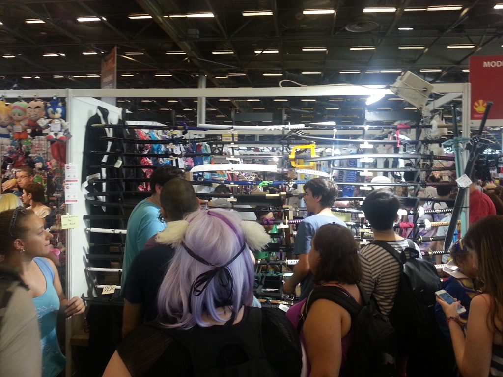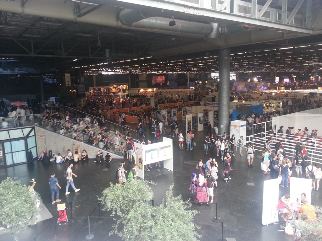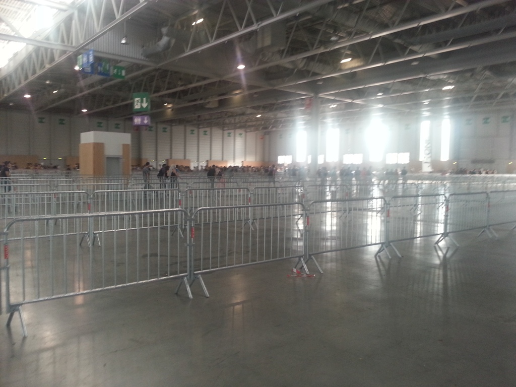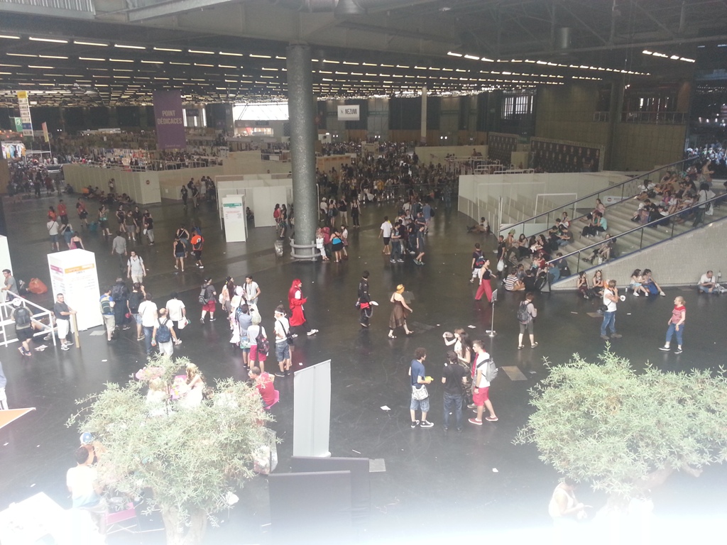8h15: Entrée dans le hangar au sein d’une des plus courtes files d’attente qu’il m’aura été donné de faire dans une Japan Expo, 20 min à tout casser. Il faut savoir que contrairement aux années passées, je suis parti très tôt de chez moi (à 7h30 j’étais déjà à la gare de Châtelet) alors que les guichets de prévente ouvraient à 9h. Et pour une fois, le RER B n’était pas bondé à cette heure-ci.
