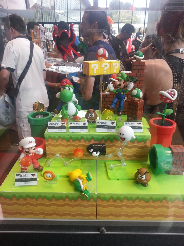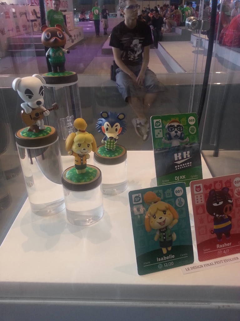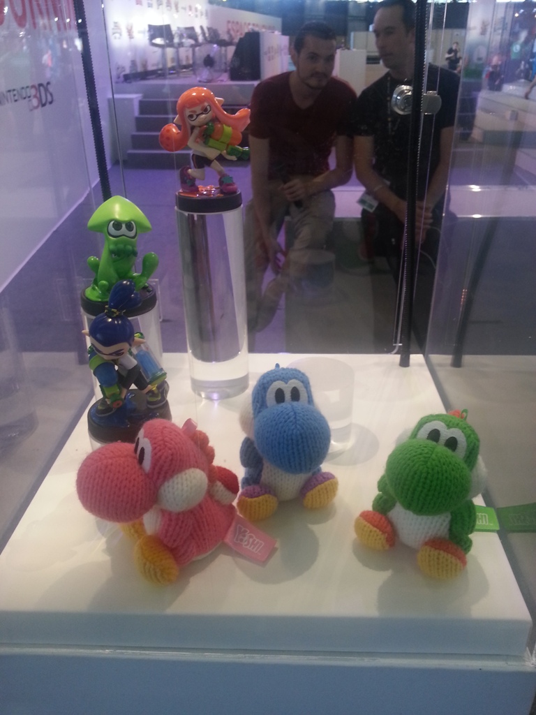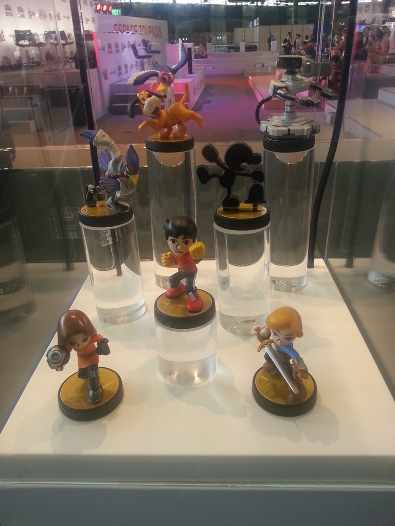 9h07: Après avoir contemplé ma future caisse la Batmobile de Arkham Knight à taille réelle, je file tout droit vers le stand Nintendo à 2 pas de là, plus animé que jamais. Quelques Amiibos (déjà en vente pour la plupart) ainsi que des coques pour New3DS étaient exposés en vitrine pour les plus curieux. La grande scène du stand comme à son habitude, se tenait prête à accueillir un des nombreux tournois Nintendo (Smash Bros, Mario Kart 8, Pokémon), eux-mêmes retransmis sur la chaîne Twitch de Nintendo France.
