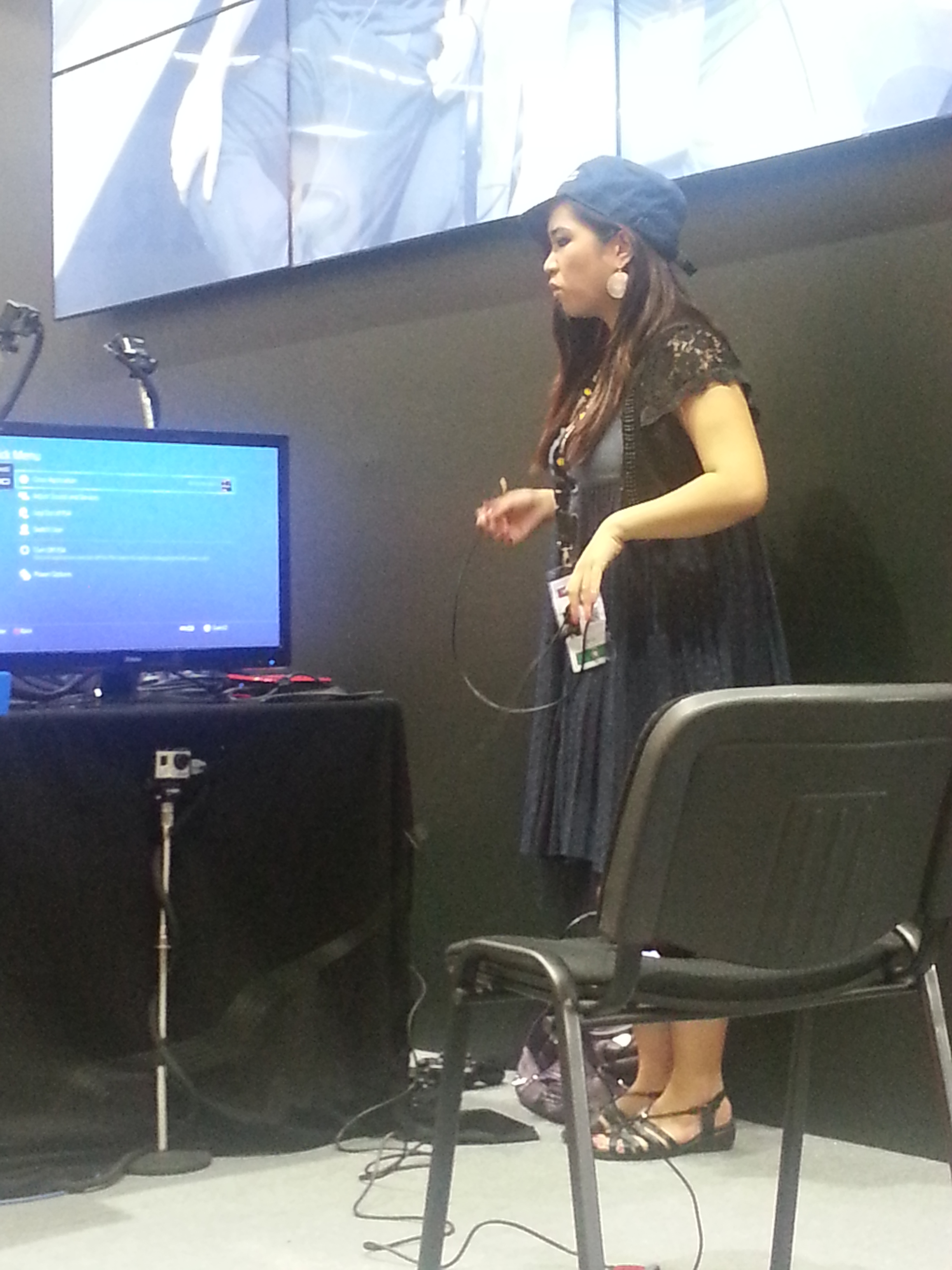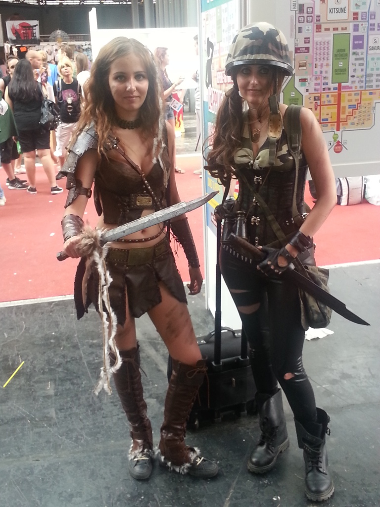 12h21: J’assiste à un match très serré de Mortal Kombat X entre un individu et Kayane. Animatrice chez Game One et également une très grande championne de jeux de combats (déjà vice championne de France de Dead or Alive 2 à 10 ans, rien que ca). Toujours dans le thème du jeu et à 2 pas de là, 2 Cosplays plutôt sexy prenaient la pose.