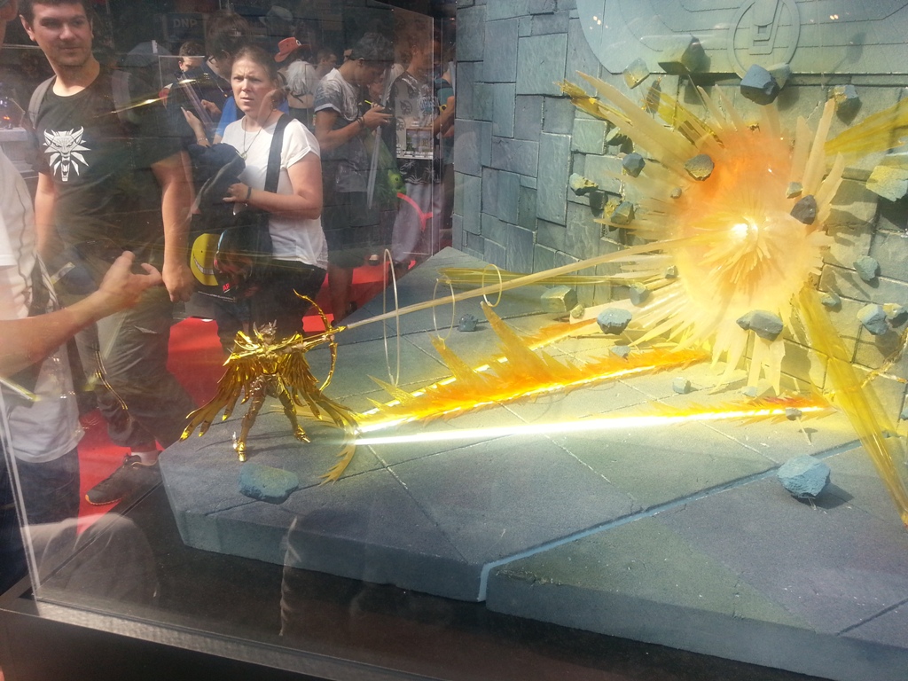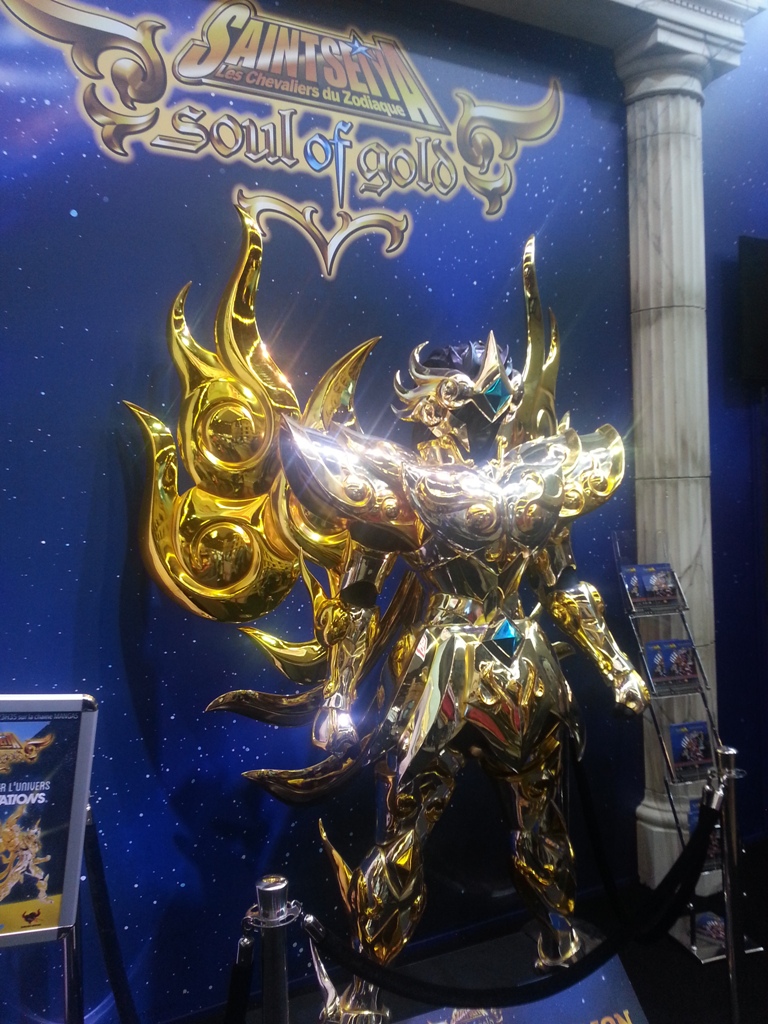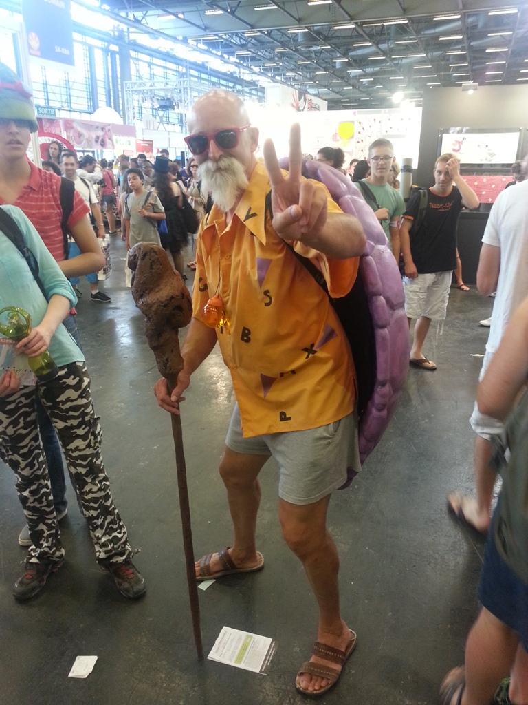 16h -> Fin: Dernière grosse balade avant le départ du salon avec d’autres Cosplays accostés. Avec les versions féminines de Francky & Rebecca, Sheik, et mon coup de cœur du salon, Tortue Géniale ! Qui comme dans le manga aime beaucoup les femmes… Un Cosplay à fond dans son rôle comme on aimerait en voir plus souvent. J’ai aussi pu contempler une figurine magnifique (mais probablement pas à vendre) des Chevaliers du Zodiaque.
