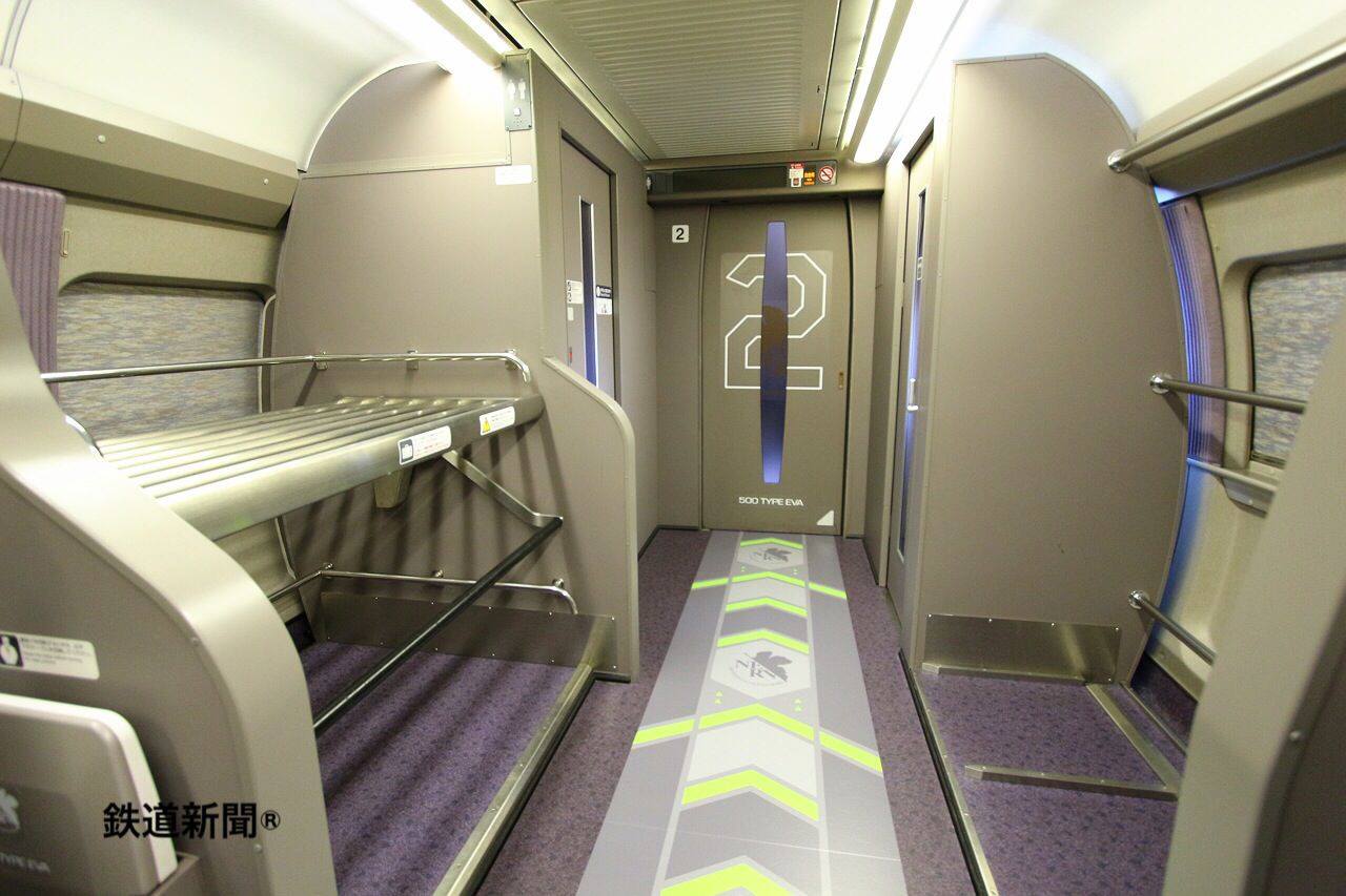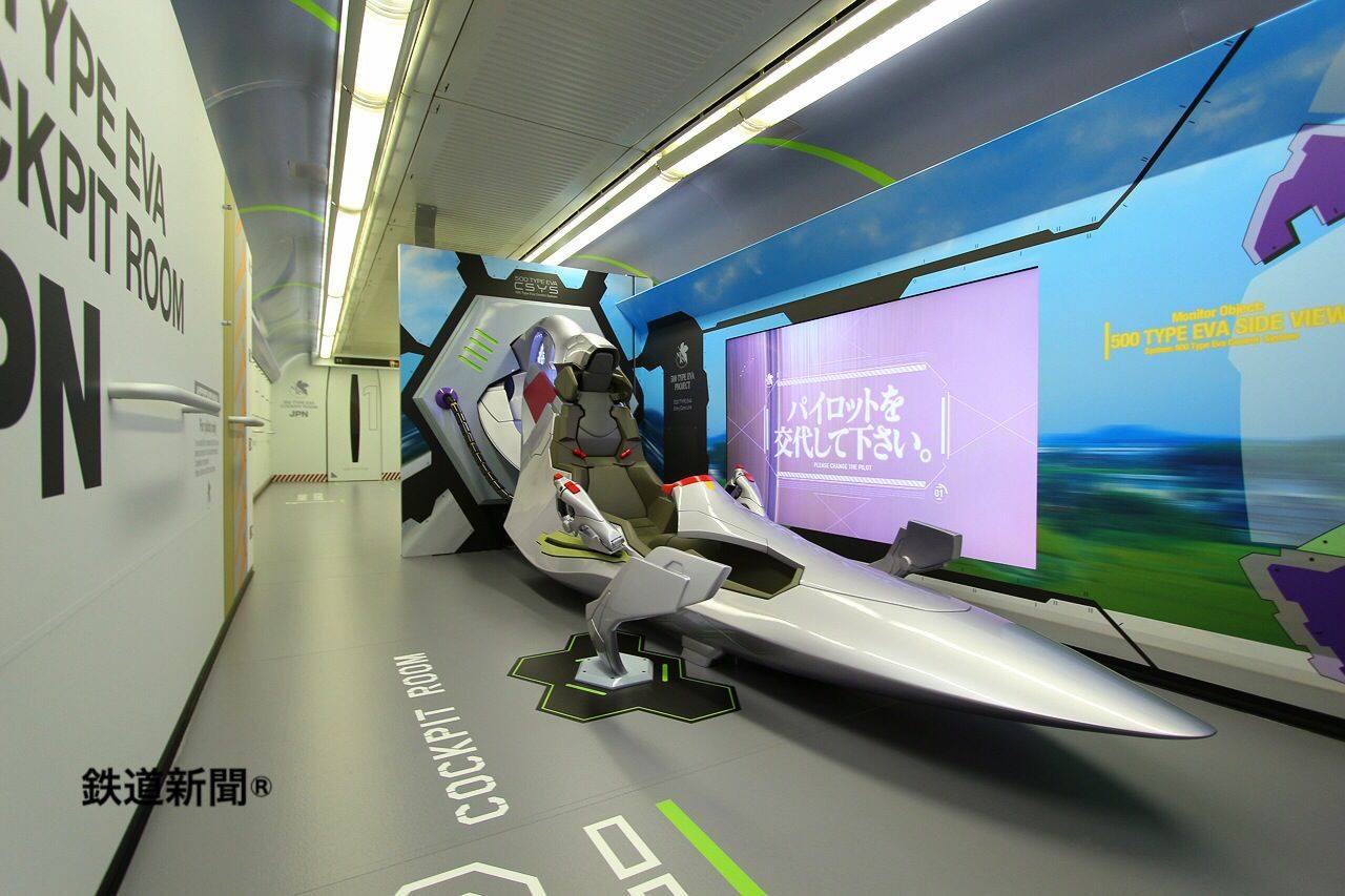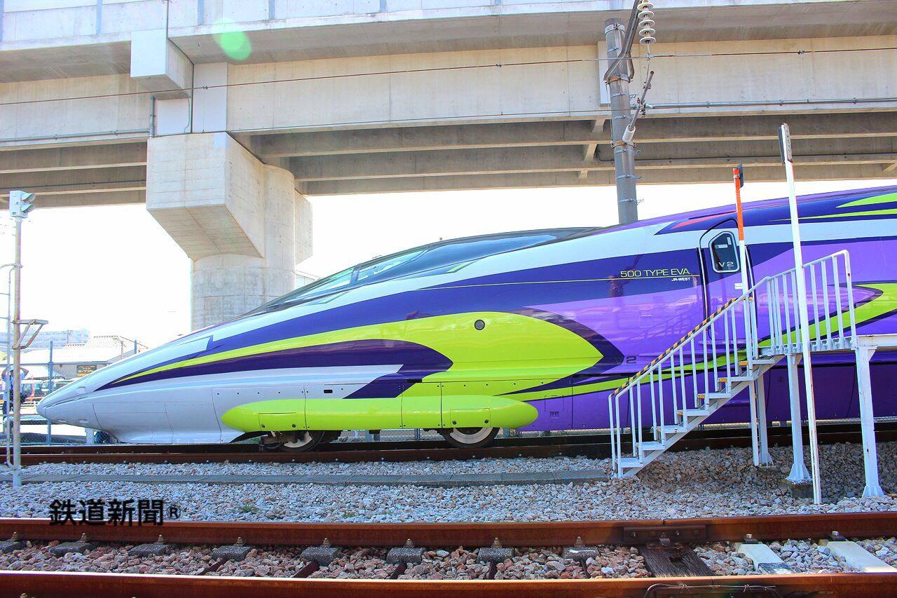 A l’occasion du 20ème anniversaire de l’anime, le projet « Shinkansen Evangelion » consistant a relooker à l’image de la saga la ligne à grande vitesse Sanyo Shinkansen (reliant les villes Japonaises de Osaka à Fukoka) arrive à maturité. Le producteur lui même Hideaki Anno et le designer Ikuto Yamashita ont rassemblé leurs forces afin de construire le train ultime pour les fans, le 500 Type Eva.