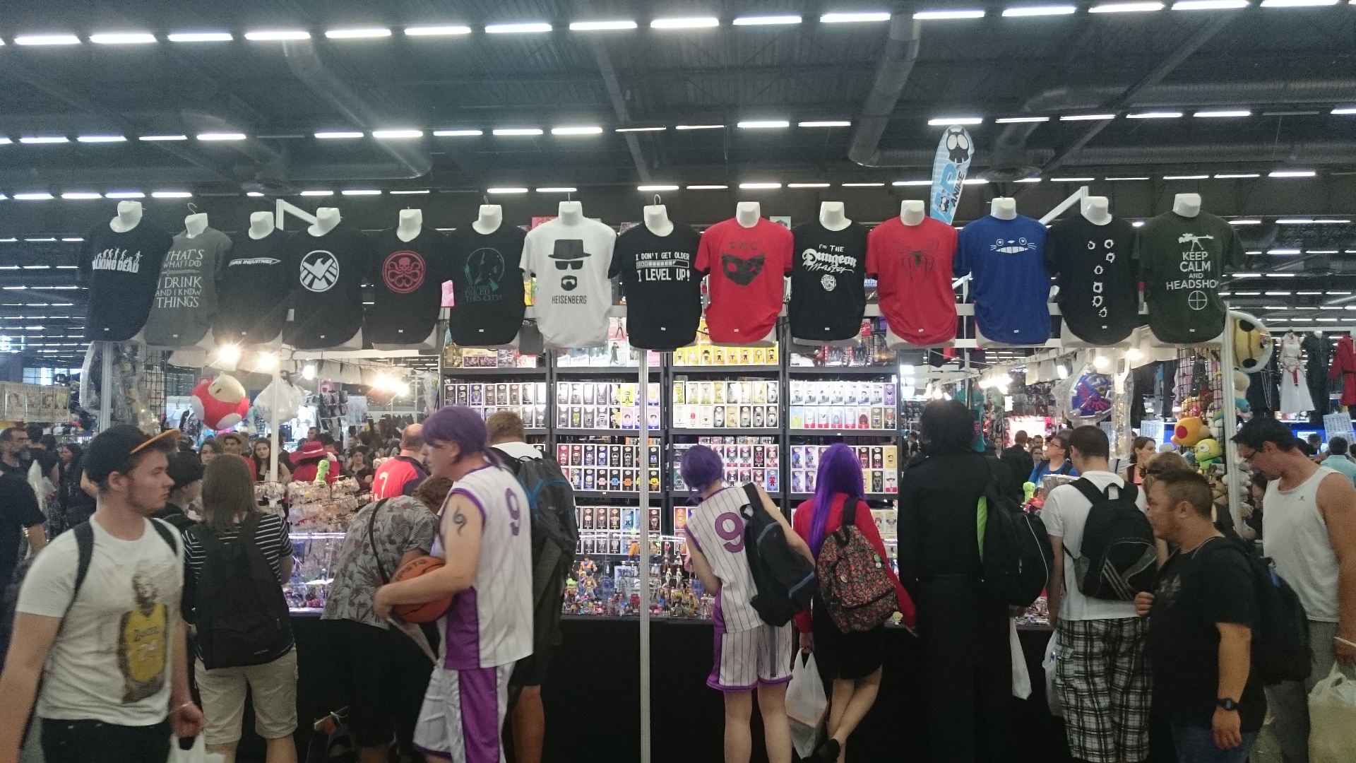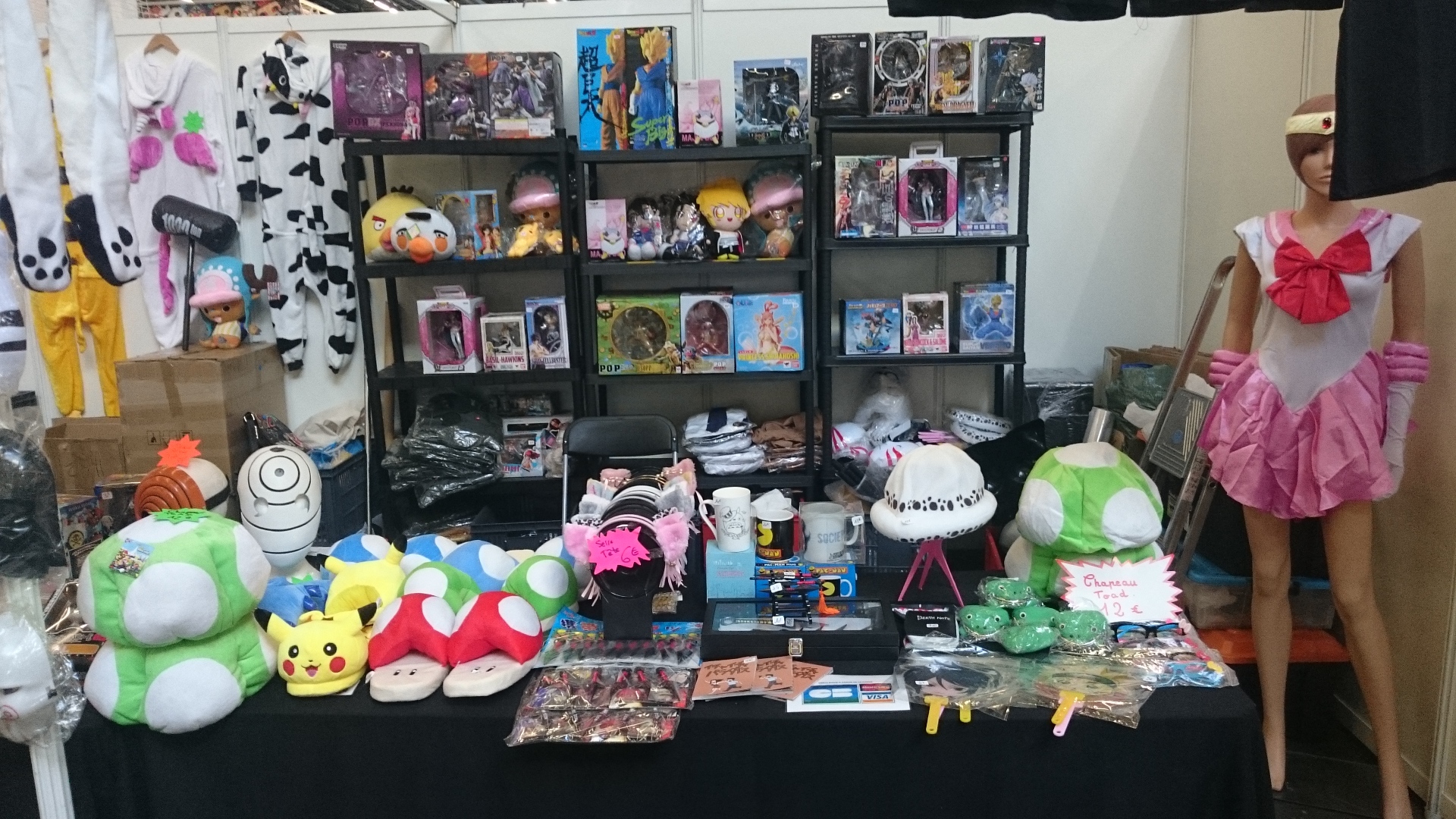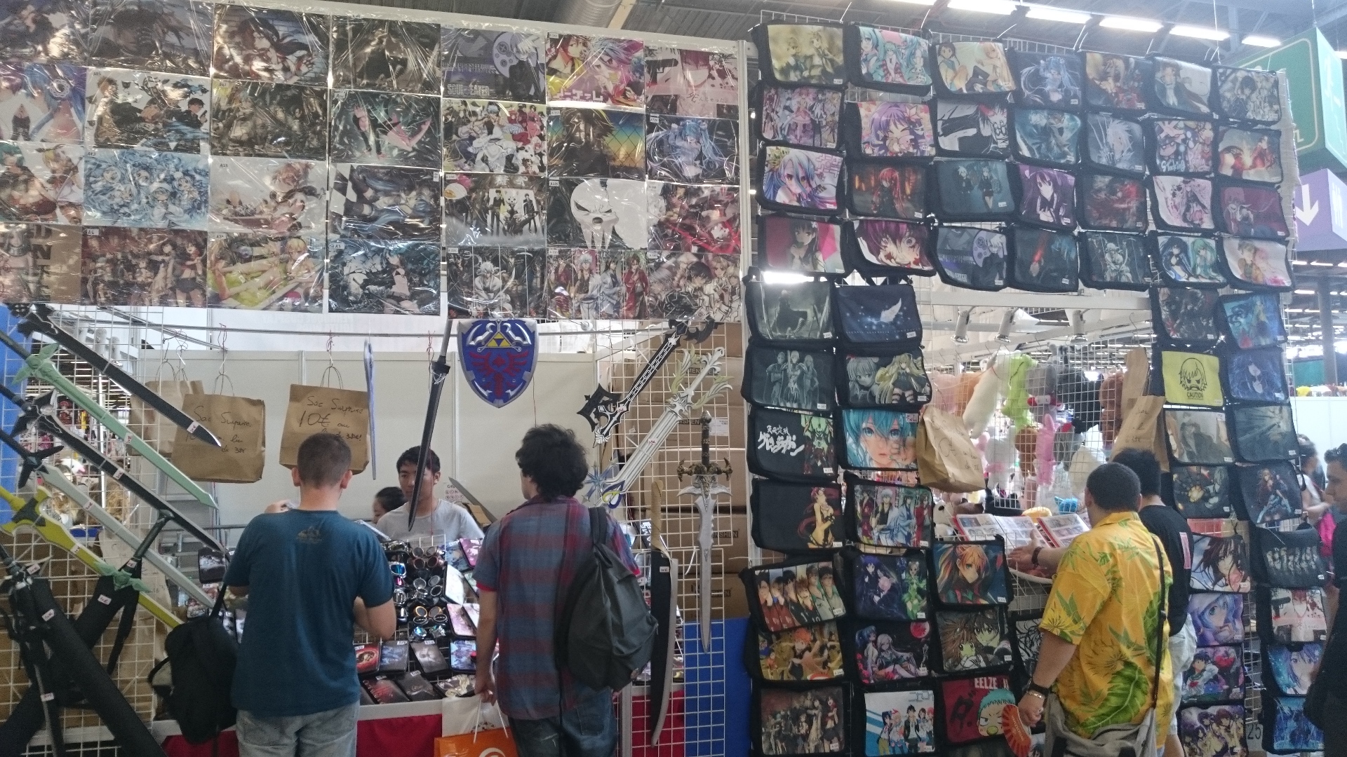 Énumérer de manière exhaustive tous les différents produits dérivés que regroupe la Japan relèverait de la folie. Même pour un habitué comme moi, y a de quoi devenir fou devant ces T-Shirts en surnombre, mais aussi casquettes, épées, figurines (j’en reparlerai plus bas), sacs, peluches, babouches, lentilles, perruques, jeux vidéos, ou même des tapis de souris aux formes généreuses