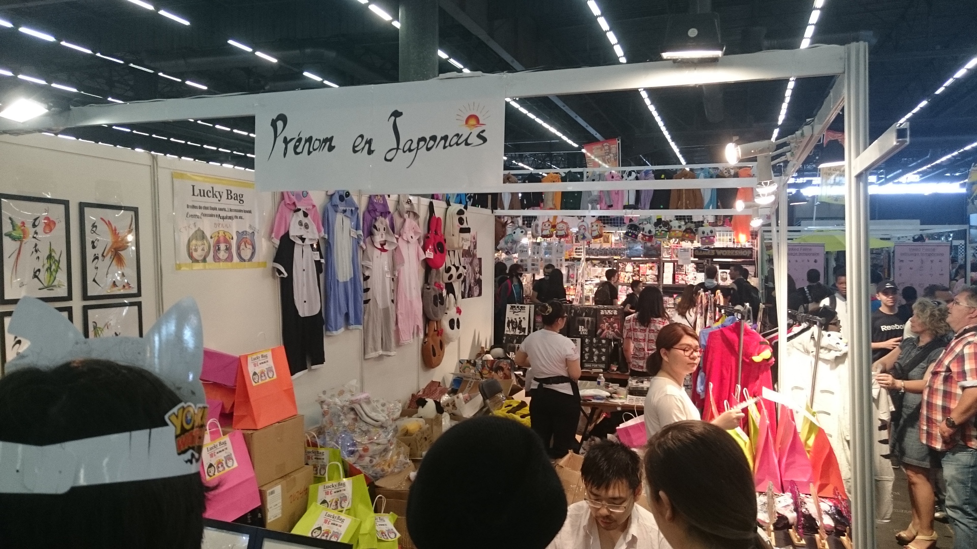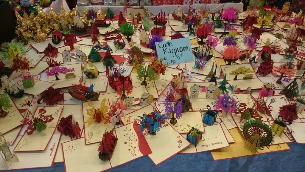 Mais il serait dommage de passer à coté de produits qui eux, représentent mieux la culture Japonaise. Comme leurs costumes traditionnels, lampes, cartes Kirigami (dont j’en ai récupéré deux dans le pactole final), et même du dessin. À l’image de cet artiste qui a écrit mon prénom dans sa langue natale et dessiné un petit dragon en guise de souvenir. Démonstration (rapide) en vidéo ci-dessous filmé par mes soins.