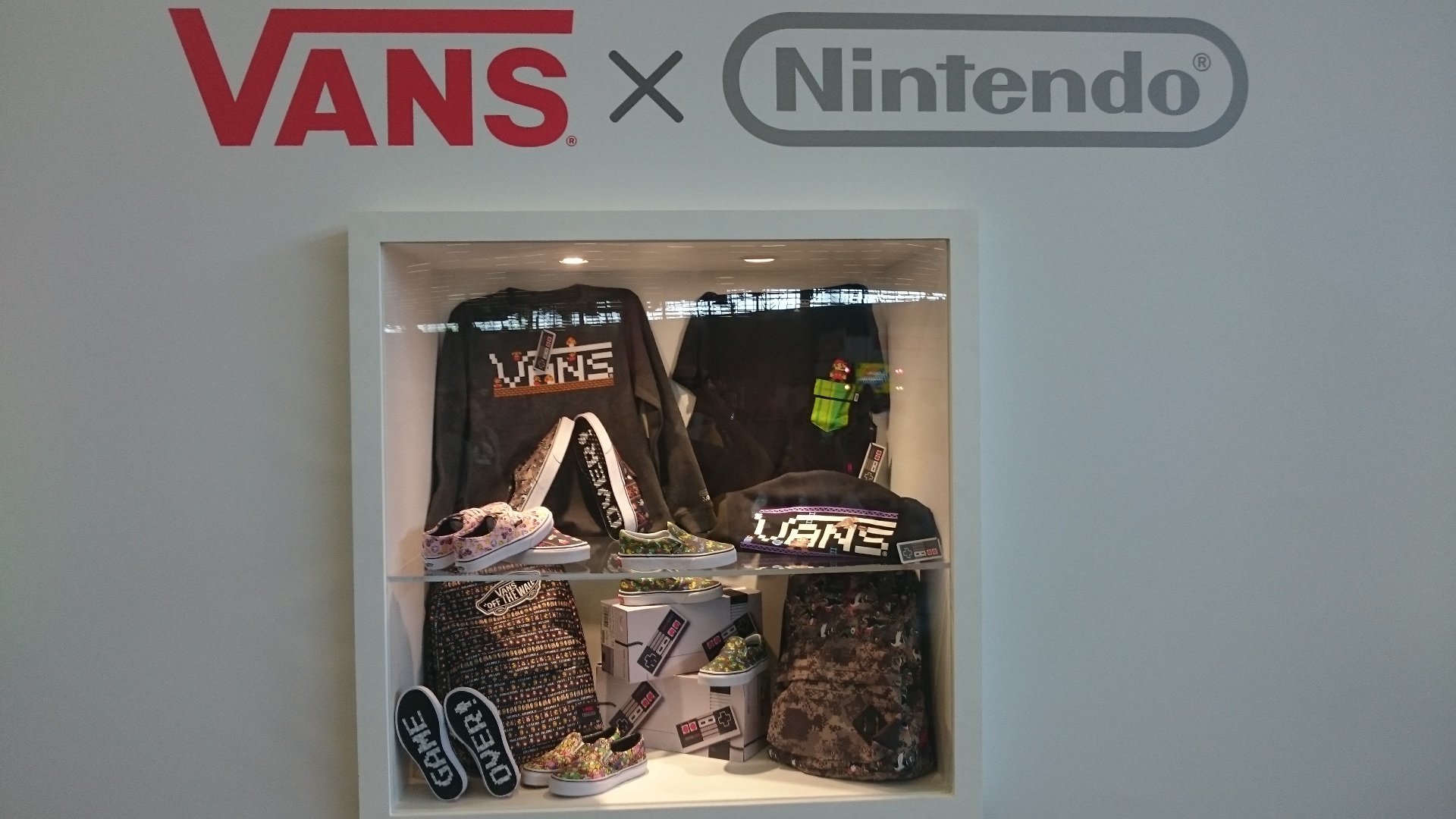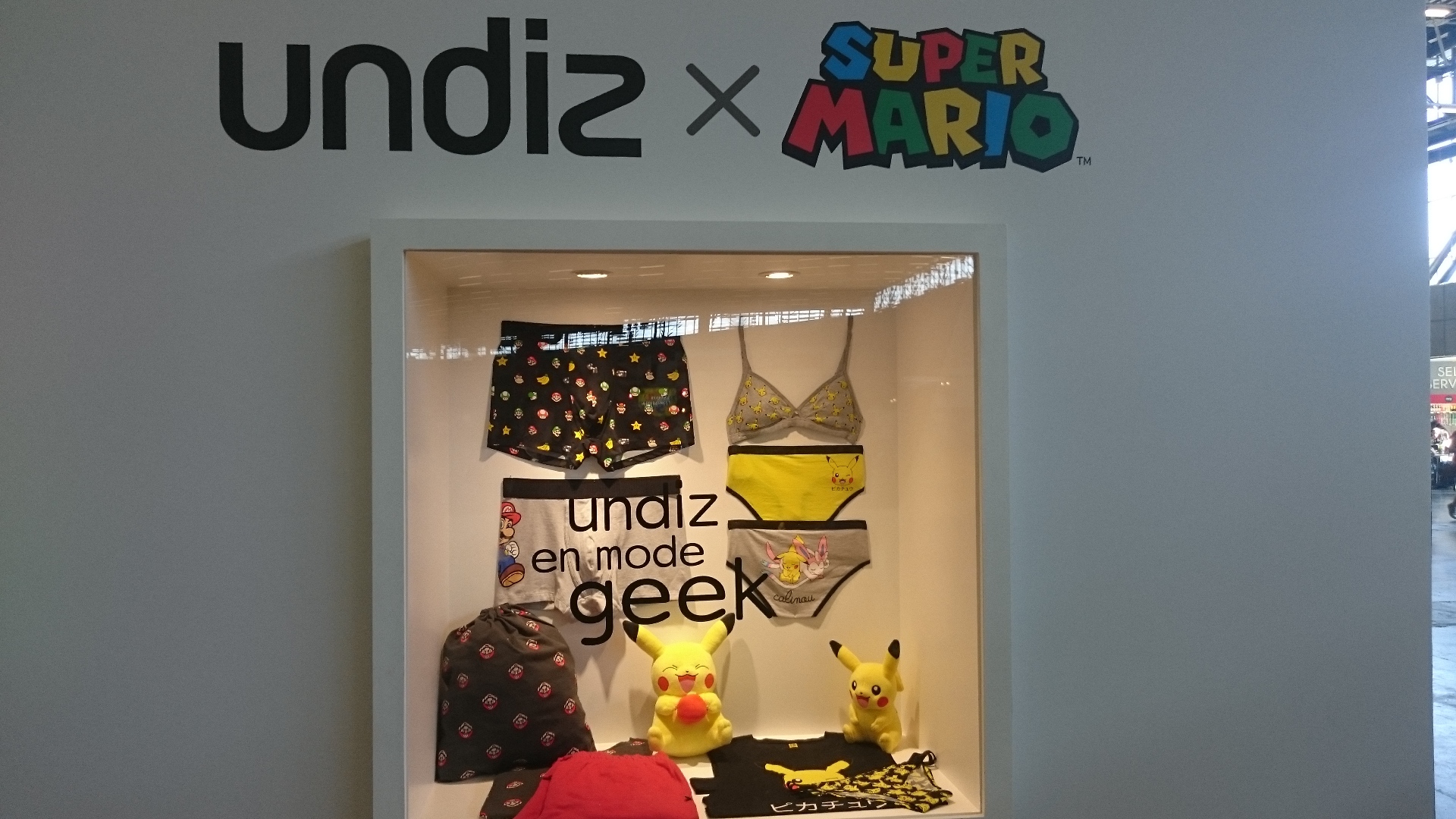 3 vitrines auront piqué ma curiosité. Une exposant la collection Vans spéciale Nintendo. Une autre de chez Undiz avec des sous-vêtements au thème du plombier moustachu. Et enfin “la vitrine à 10.000€” avec tous les Amiibos sortis à ce jour.