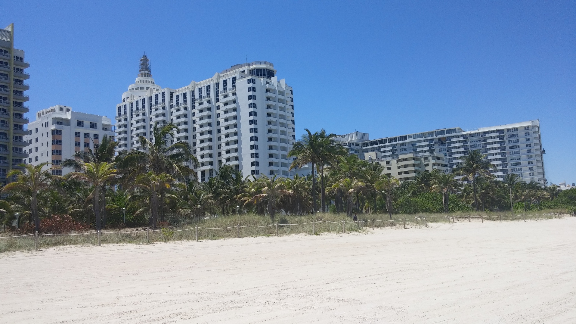 Palmiers, Soleil qui tape à fond, immense plage de sable blanc avec une mer bleu turquoise, bonne et quasi transparente. Personnellement, j’ai fait la Normandie, l’Aquitaine et la région PACA en France, et selon-moi aucune de leur plages n’arrivaient à la cheville de celles de Miami dans ces critères.