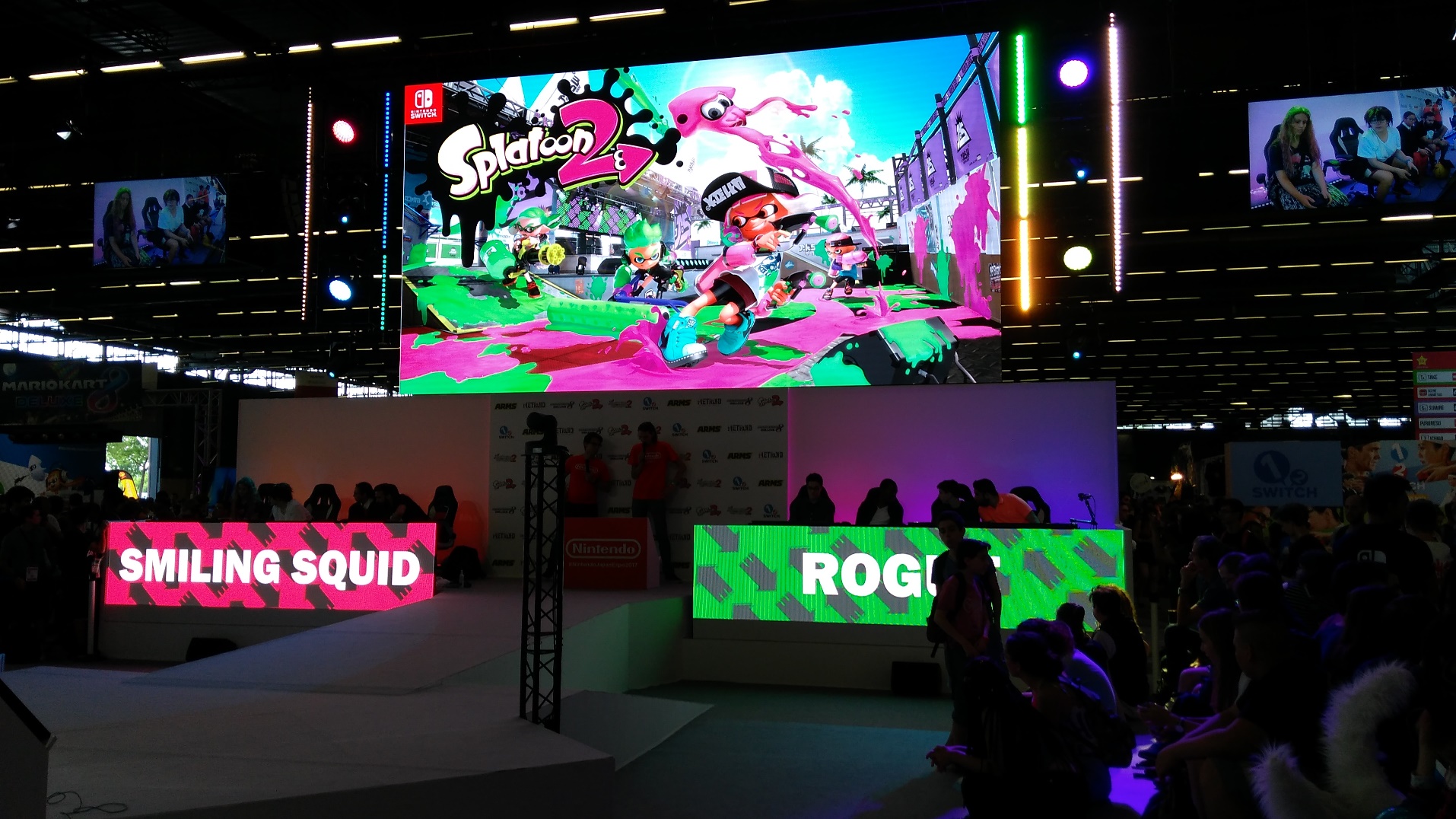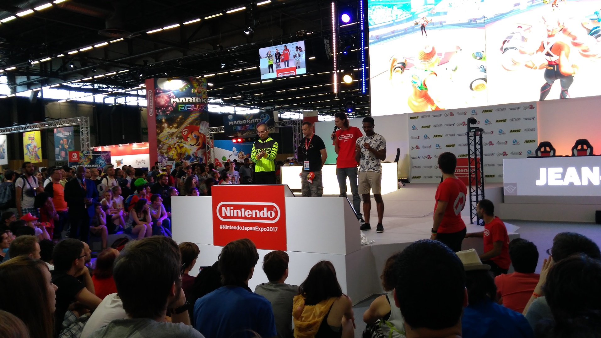 Je pense qu’il n’y a pas eu une seule JE que j’ai faite sans que je passe par la case Big N. Au moins aussi vaste si ce n’est plus que l’année passé, et toujours pleine à craquer niveau affluence. À tel point qu’il était difficile de circuler dans l’artère principale près de la grande scène où se jouait des tournois endiablés. Notamment sur ARMS, où le producteur du jeu Kosuke Yabuki lui-même est venu défier des joueurs pros français.