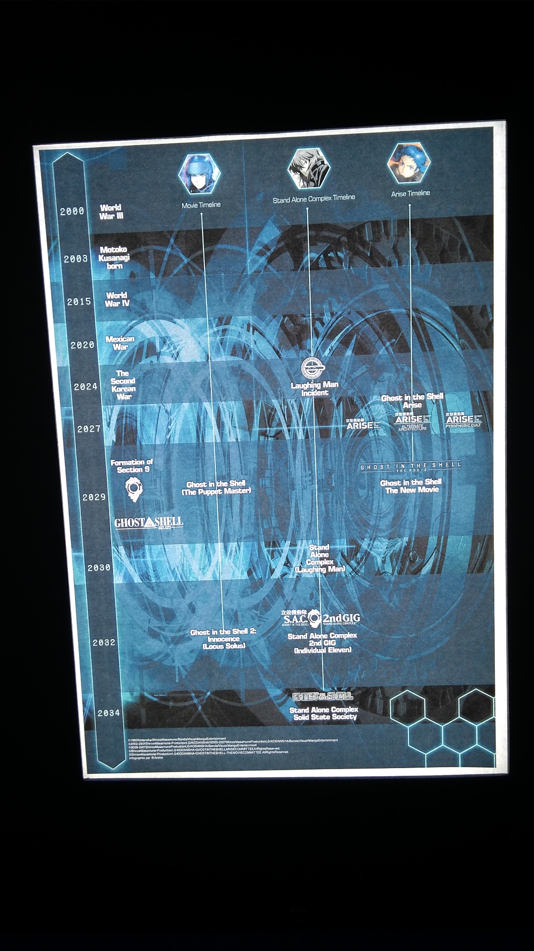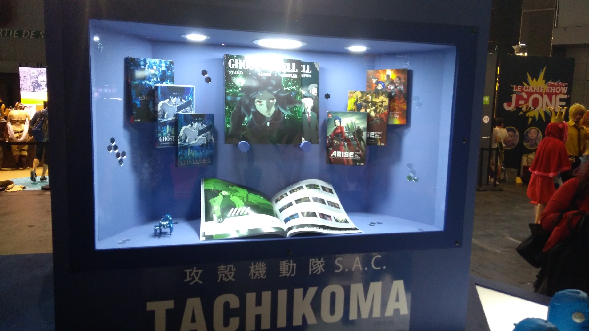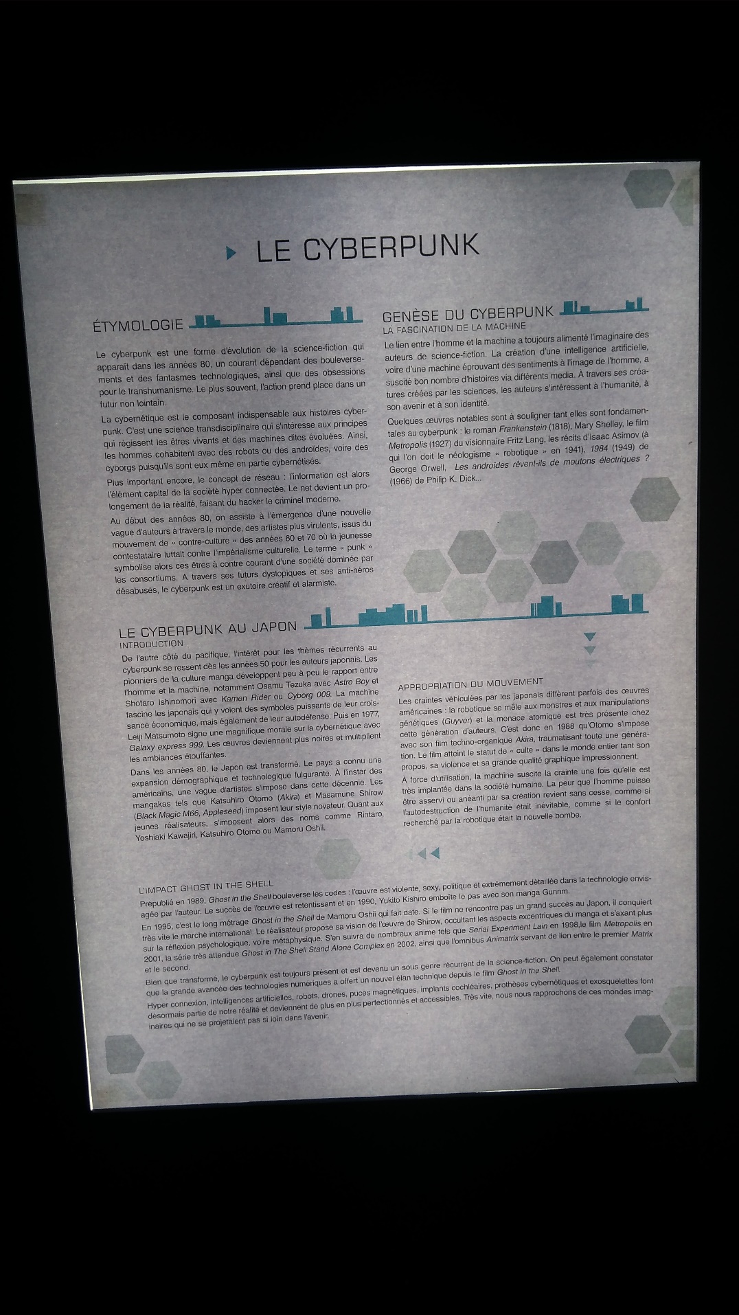 Toujours dans la même zone, une toute petite expo sur l’univers de Ghost In The Shell avec aussi une frise, des fiches explicatives et des objets en vitrine.