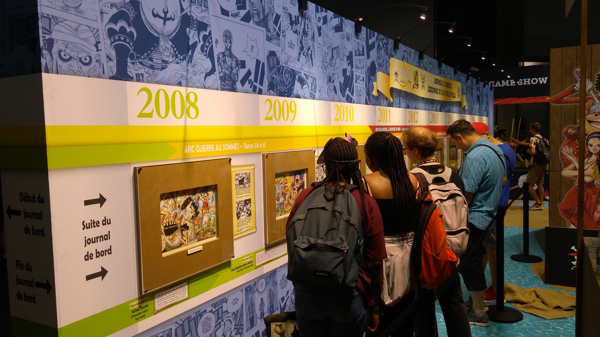 Ceci fait, je me dirige vers la zone Anime 100, où à deux pas de là s’y trouvait une fresque chronologique des événements marquants de One Piece afin de célébrer les 20 ans du manga. Je salue l’effort même si je m’attendais à mieux comme hommage anniversaire. Surtout quand on sait que selon les dires du Dok’, le salon Belge de la Made in Asia avait vu les choses beaucoup plus grand.