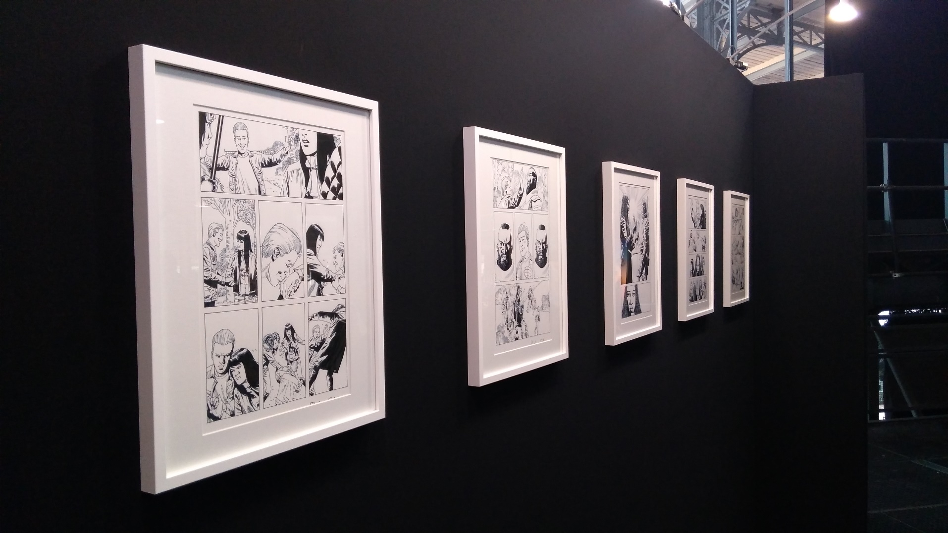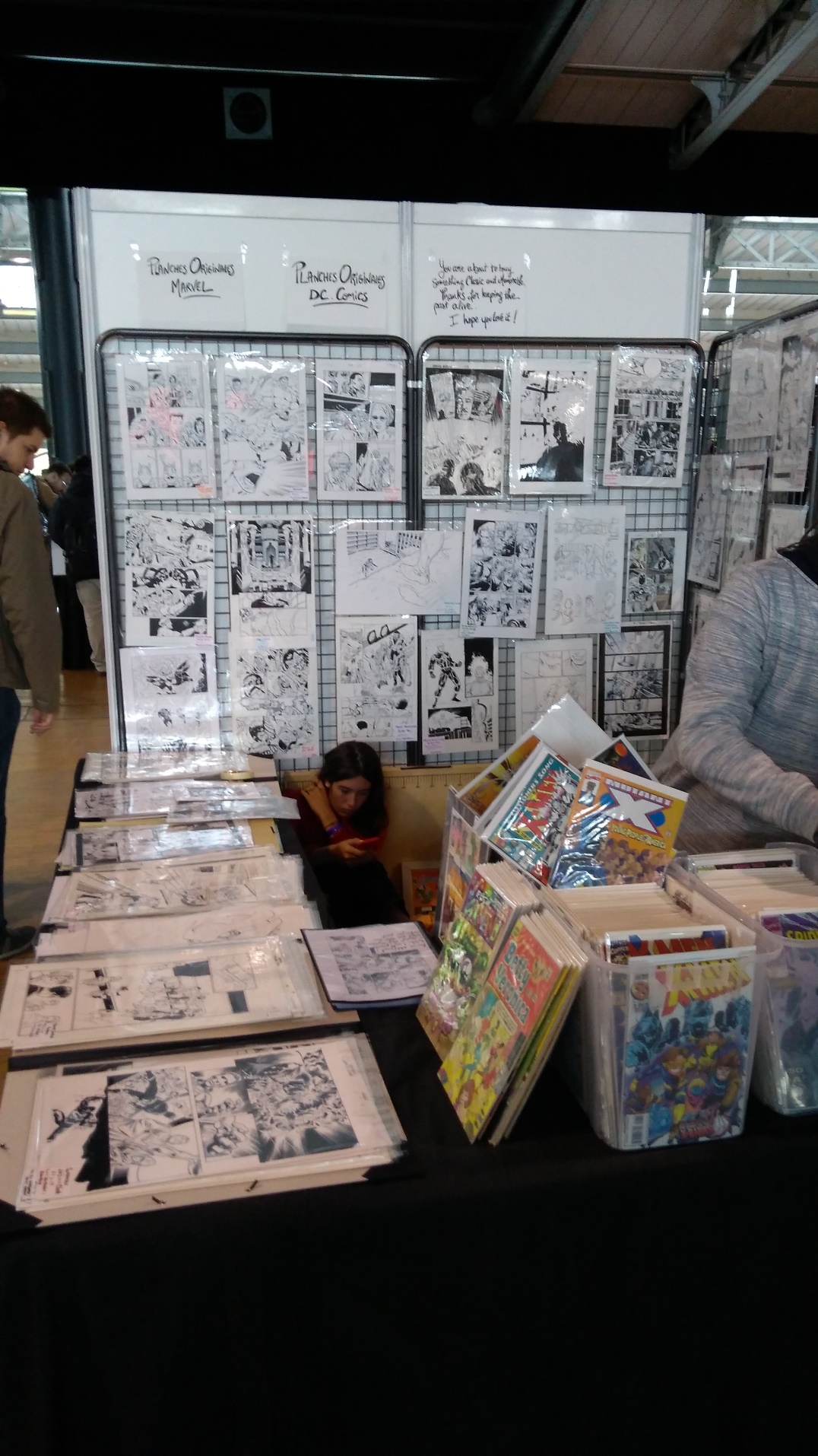 Parmi les nombreux produits dérivés qui ont retenu mon attention, des planches / BD de comics plus ou moins rares, en vente pour certains ou exposés en vitrine pour d’autres.