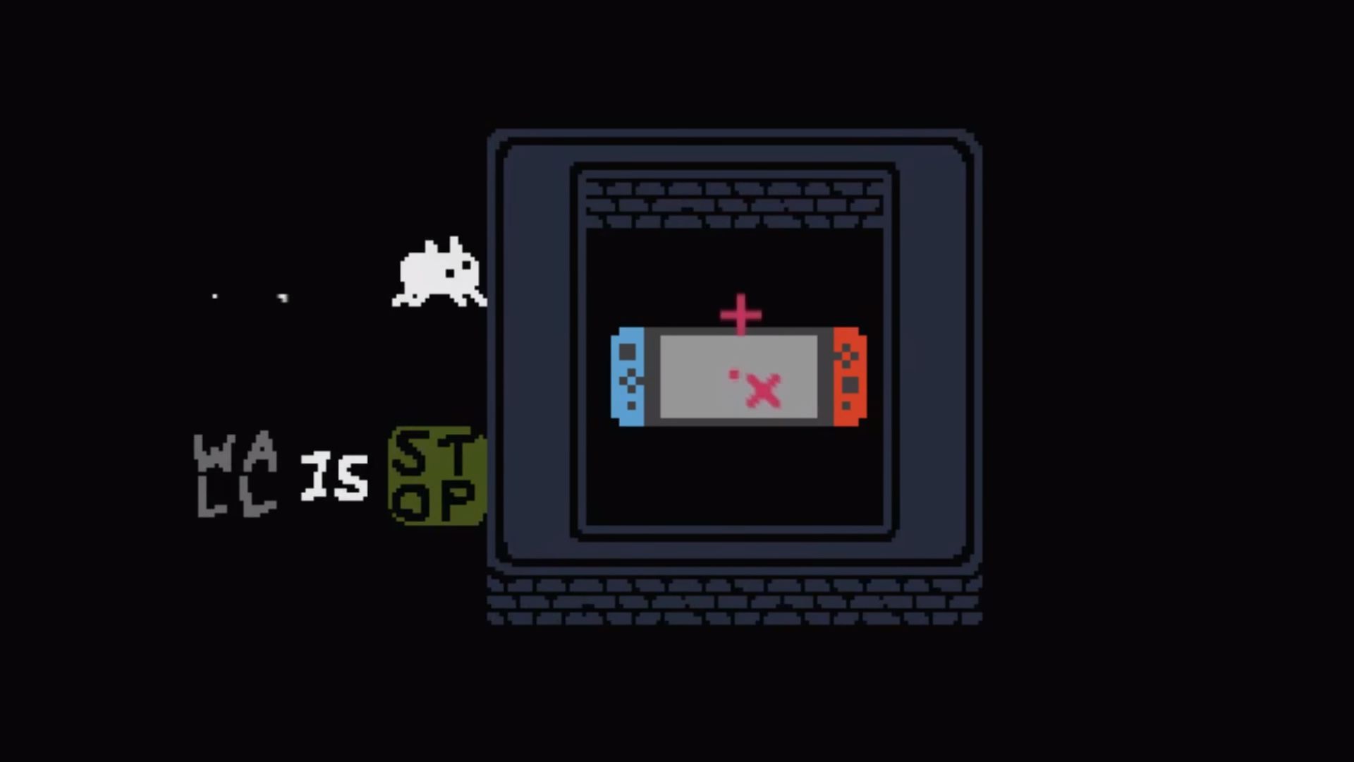 Par exemple si la phrase formée est « Wall is Stop » (Mur est le Stop), alors le mur se comporte comme un mur, et rien ne peut passer au travers. Mais si la phrase est « Baba is Wall » (Baba est le Mur), c’est le mur entier qui bouge en même temps que le joueur. Et c’est avec ce genre de combinaisons qu’il faudra venir à bout des niveaux. Minimaliste mais astucieux.