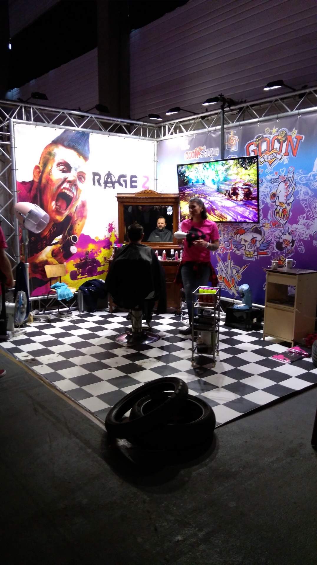 Les visiteurs pouvaient se faire coiffer au style « punk » à l’image des personnages du jeu Rage 2, sortant en Mai prochain. Non loin de là, un petit espace permettait de s’essayer à la Réalité Virtuelle.