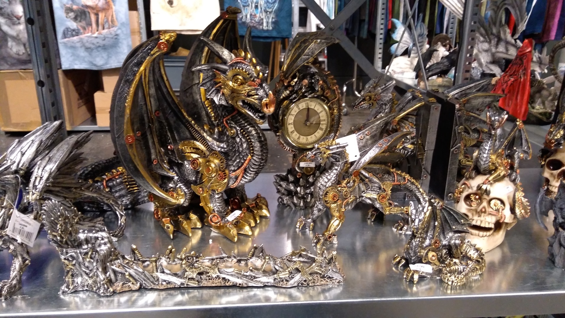 D’innombrables produits dérivés et objets comme ces Dragons Steampunk qui m’ont fait de l’œil, dont un qui avait visiblement très soif…