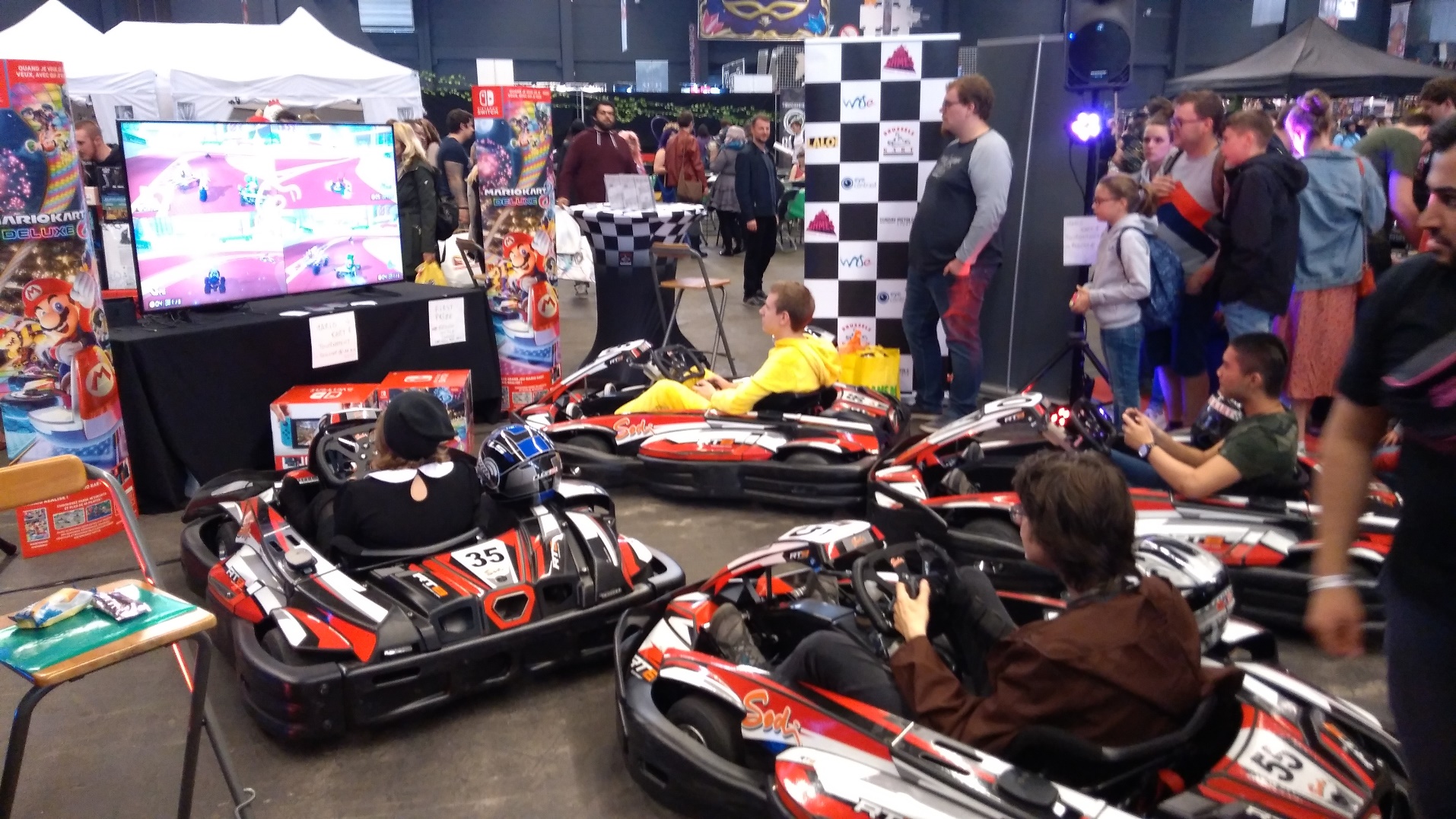Niveau activités, plusieurs tournois de jeux vidéos avaient eu lieu. Donc un sur Mario Kart 8 Deluxe où l’organisation du salon a eu la bonne idée de faire s’affronter les joueurs sur des Karts grandeur nature, mais tous à l’arrêt pour des raisons de sécurité sans nul doute…