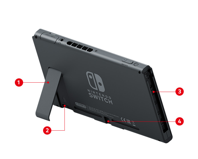 En revanche, le multi local à 2 sur une seule console va être très compliqué sur la Lite. Déjà par le fait que les Joy-Con ne sont plus détachables comme dit précédemment. Mais surtout a cause de l’absence sur la Lite du petit support (en numéro 1) permettant de faire tenir la Switch sur une surface plane.