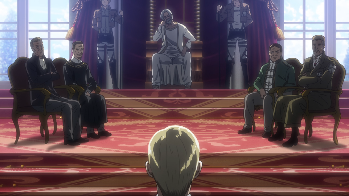 Concernant la première partie de la saison, elle fut globalement beaucoup plus calme et posée que ce que la série nous avait habitué jusqu’alors. Et cela se ressentait jusqu’à l’opening beaucoup moins épique que ses prédécesseurs, et qui avait pas mal divisé au sein de la communauté même si je l’aimais bien personnellement. La menace des titans avait temporairement laissé place à la menace humaine et aux intrigues plus politiques. Le tout agrémenté de quelques flashbacks très importants pour le développement de certains personnages clés. Comme Livai qui aura été énormément mis en avant durant cette saison, Historia et Eren pour ne citer que ceux-là. Un changement de ton qui n’a pas plu à tous, mais qui pour moi était nécessaire.