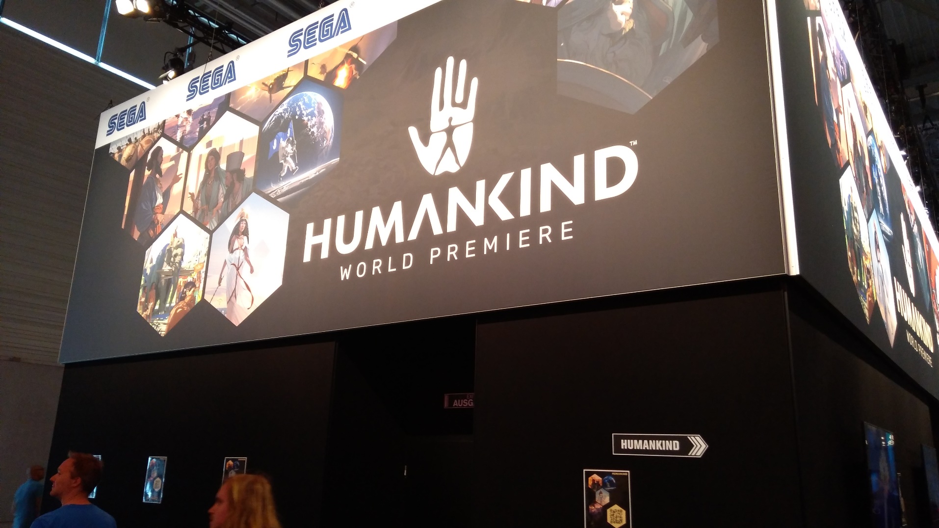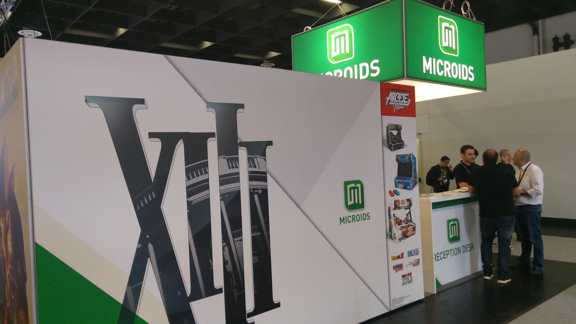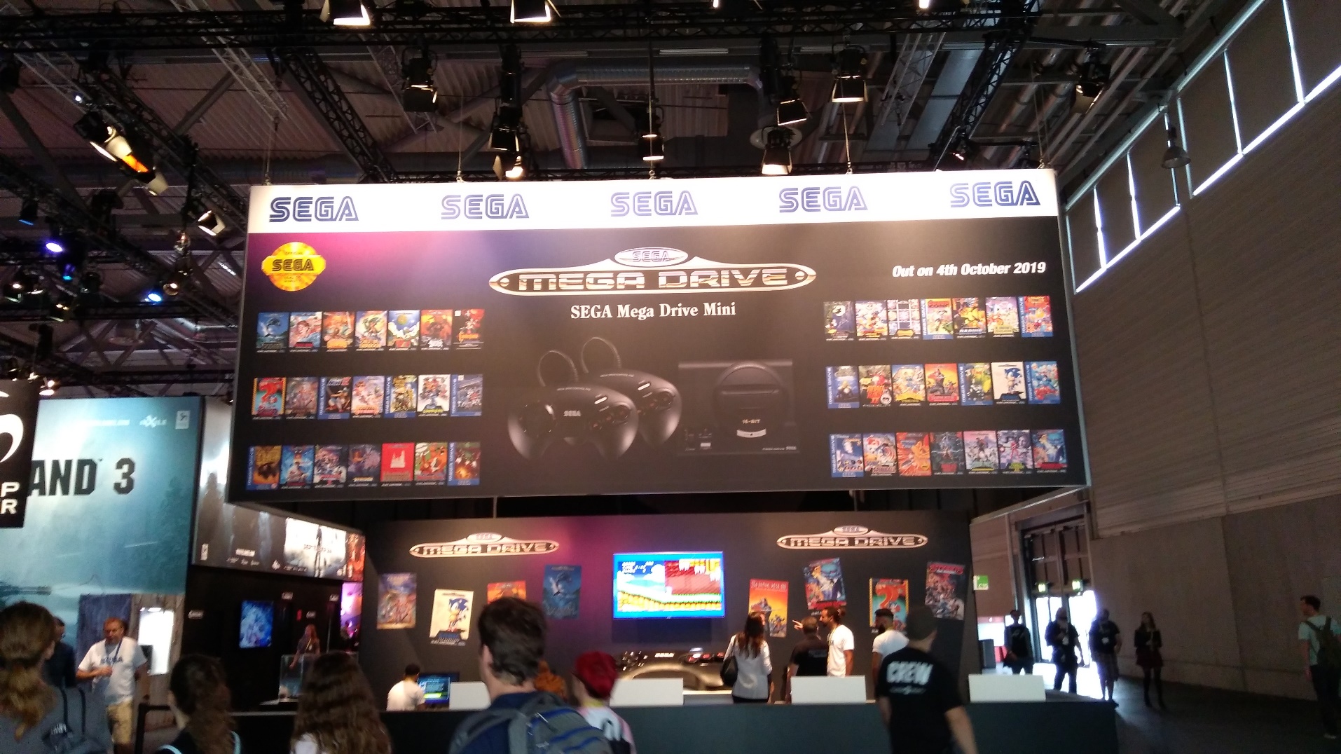 Le stand de SEGA, sa Megadrive Mini, et sa manette géante visible au fond de la photo.