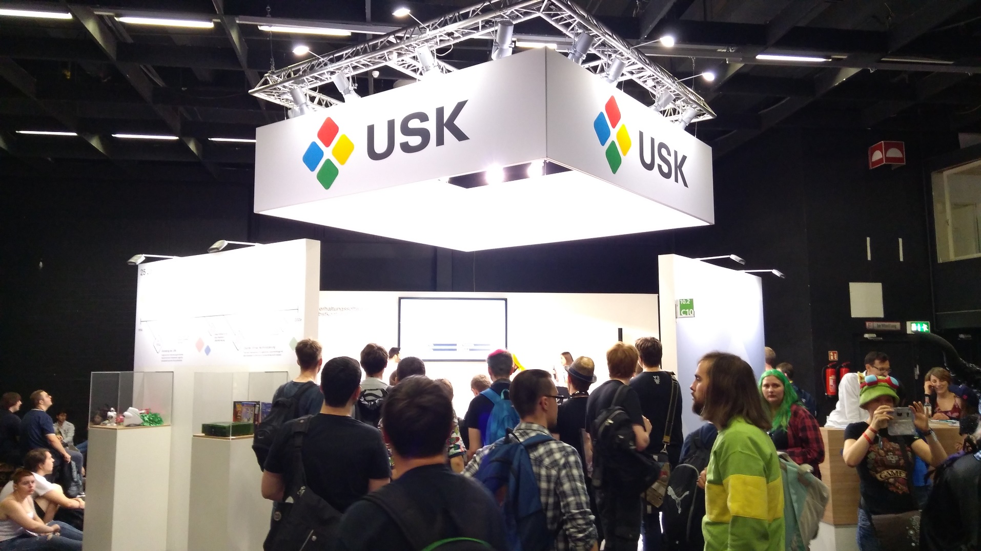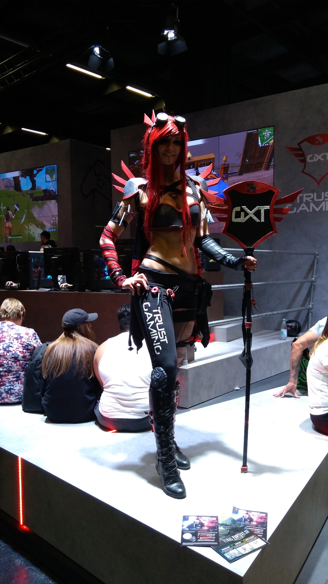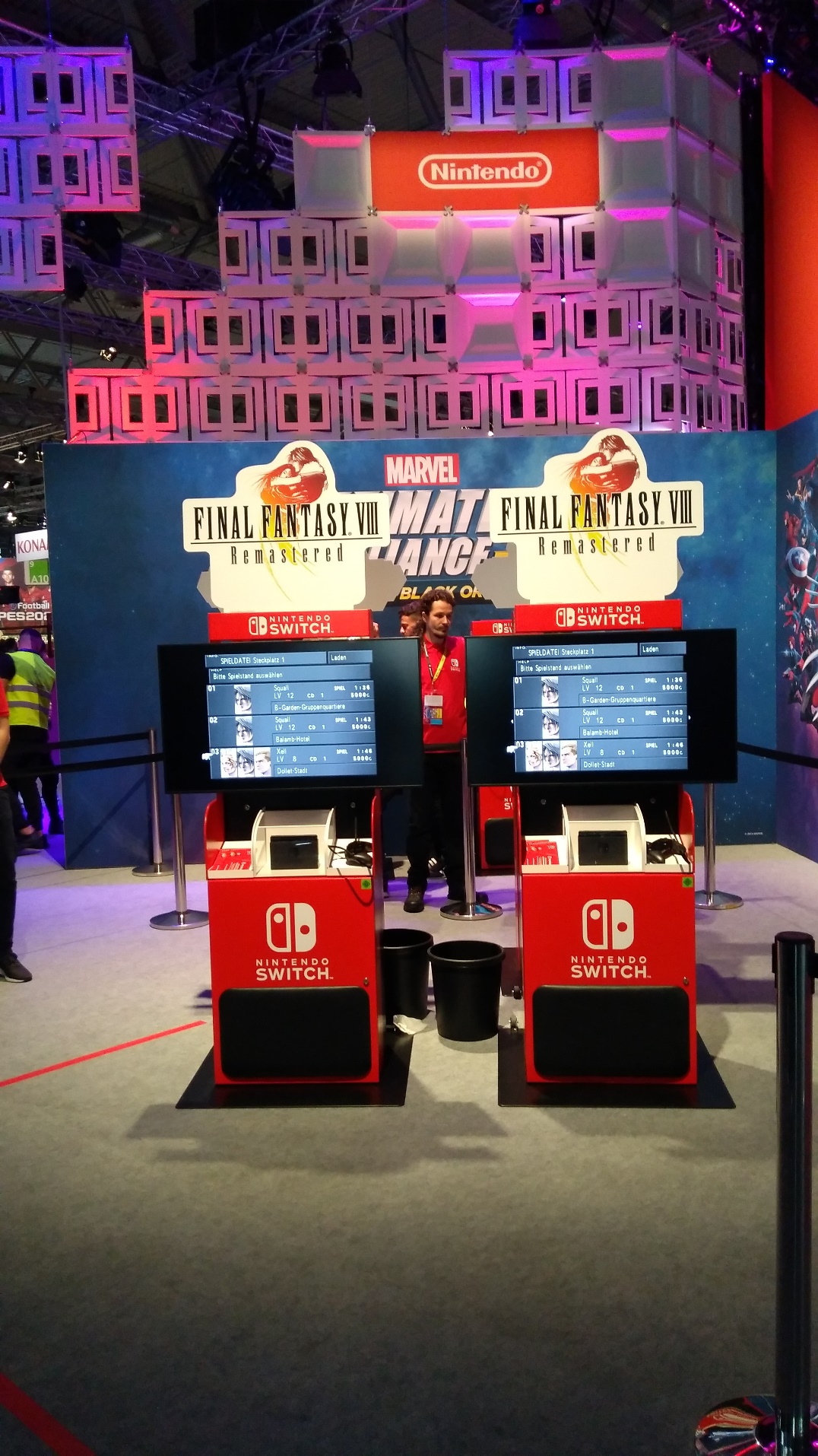 De très nombreuses vitrines présentes dont une sur Dragon Quest. Des bornes d’arcade de chez Arcade 1up. Le stand USK (pour Unterhaltungssoftware Selbstkontroll) qui est l’équivalent allemand de notre PEGI. Et la cosplayeuse Luka Costume Artist en guest chez Trust Gaming.