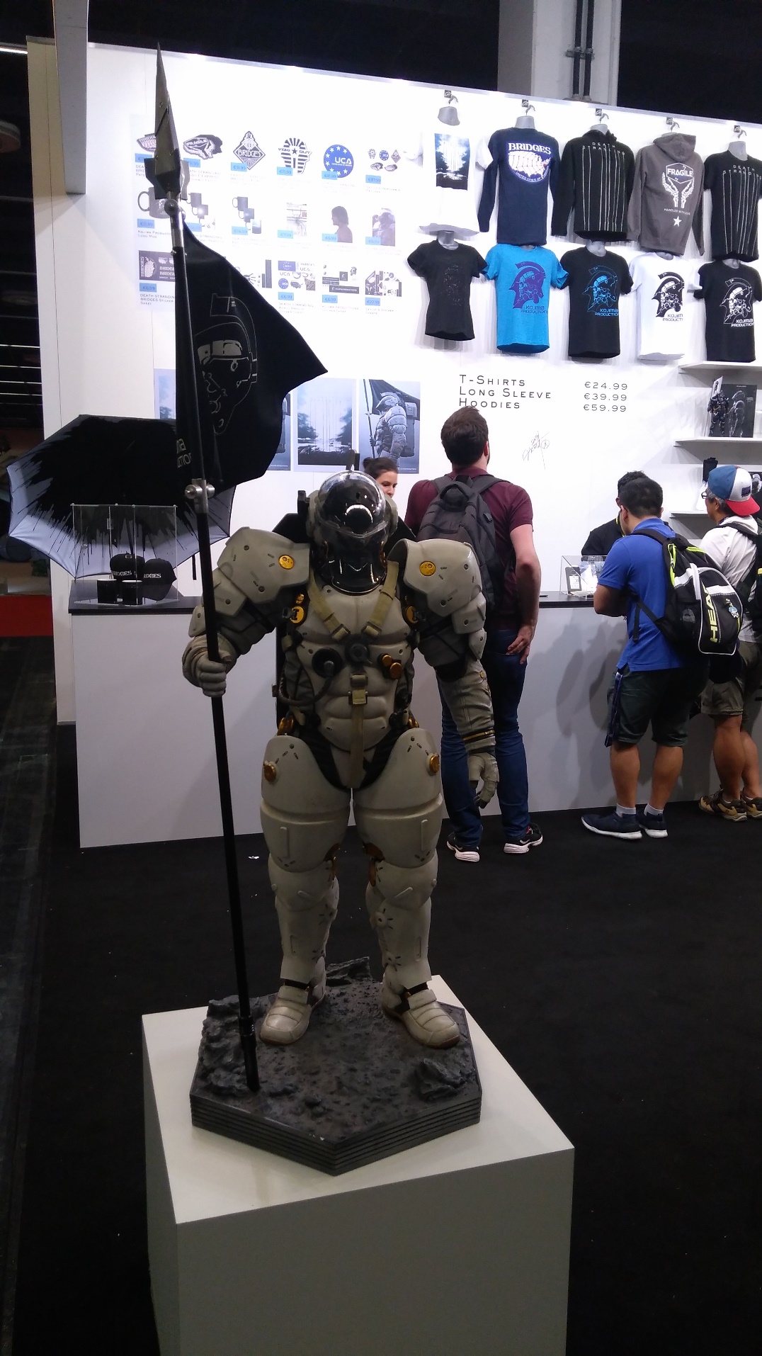 Kojima Productions avait pour la première fois dans un salon (à ma connaissance) sa propre boutique avec des tshirts, sweats, casquettes et autres arborant le logo du studio et de Death Stranding.