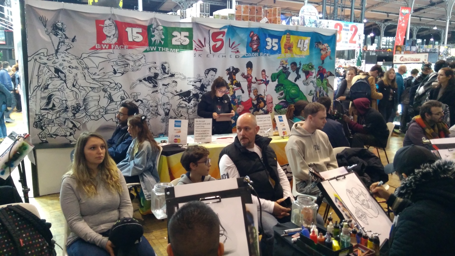 Les visiteurs désirant avoir un portrait d’eux-mêmes dans un style « comics » pouvaient le faire sur ce genre de stand. Me concernant, je l’ai déjà fait 3 ans auparavant.