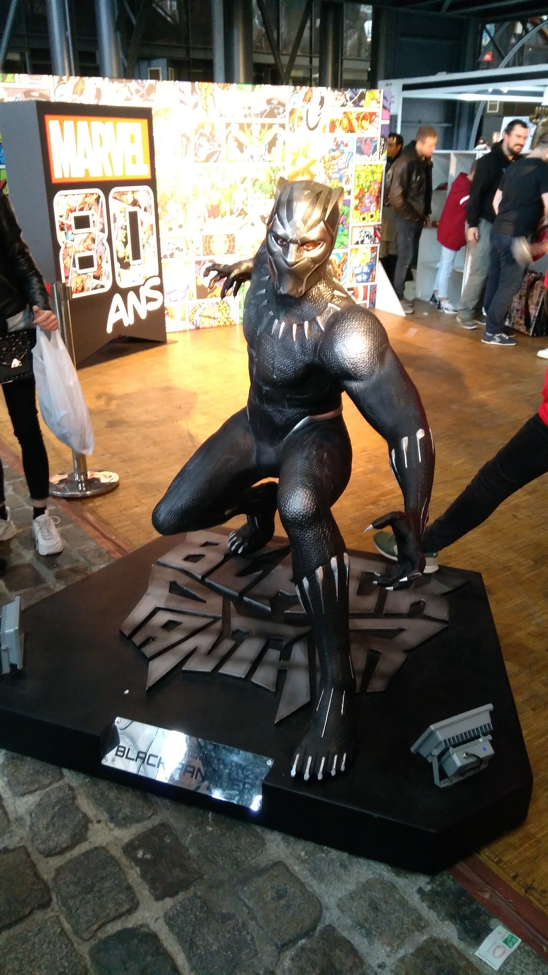 Une statue du Black Panther à 2 pas du photobooth de l’écurie Marvel qui souffle elle aussi sa 80ème bougie. Et une autre d’Iron Man dans la galerie marchande.