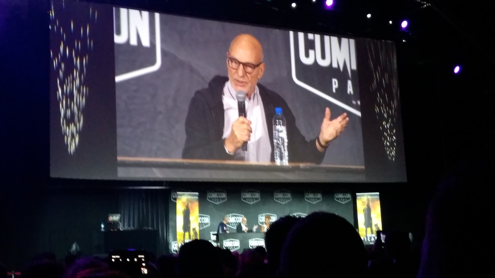 Il s’agissait de Sir Patrick Stewart. Acteur quasi octogénaire et mondialement connu pour son rôle du Professeur Xavier dans les films X-Men. Et surtout en tant que Jean-Luc-Picard dans la série Star Trek: The Next Generation (1987-1994). Rôle qu’il endossera à nouveau plus de 30 ans après dans Star Trek : Picard par Alex Kurtzman le 23 Janvier 2020. Et dont on a eu un trailer quasi exclusif durant cette Comic Con.