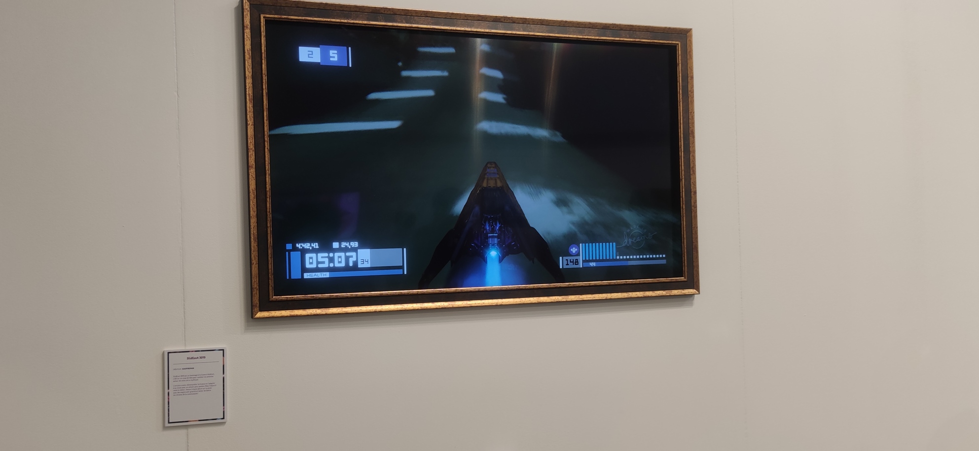 Une autre création d’un Gauffreman décidément bien inspiré, et l’une des plus impressionnantes de l’expo. C’est ni plus ni plus ni moins qu’un Wipeout recrée de toutes pièces. Tout y est, le gameplay nerveux, la jauge de vie, le tracé avec des virages serrés, les boosts, la sensation de vitesse, et la bande son électro.