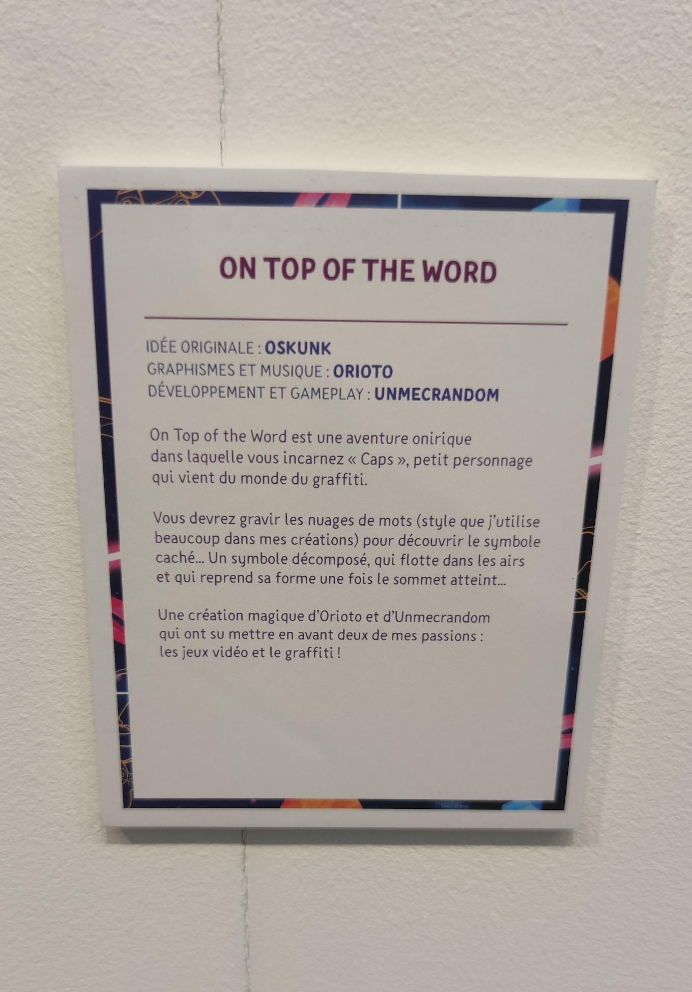 Une douzaine d’entre-elles étaient exposées comme dans un musée d’art moderne avec même des cadres propres à chacun d’eux en guise de bordures. Et aux genres variés puisqu’on y retrouvait des jeux de plateforme comme PIP Gemwalker, de rythme comme Player Piano Player, d’exploration comme Haus of Bevis et bien plus encore qui sont répertoriés sur le site indreams.me.