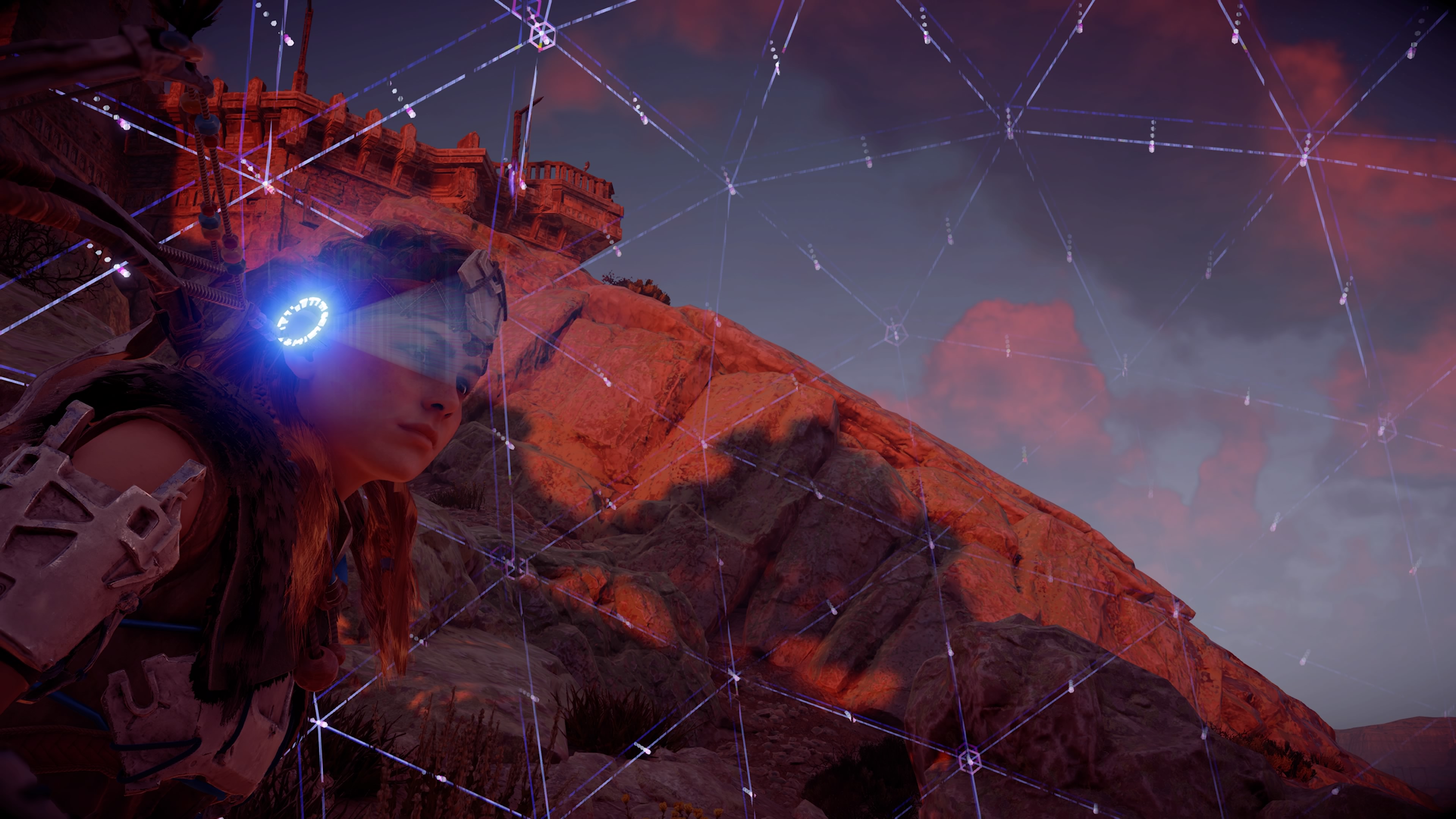 L’autre ligne narrative se situant dans le lointain passé des « Anciens « . Et nettement plus intéressante pour moi. Une autre histoire racontée par le paysage et les ruines qu’ils ont laissés derrière eux. Et aussi à travers le Focus d’Aloy qui révèlera au fur et à mesure, des récits et hologrammes d’époque de ces fantômes du passé.