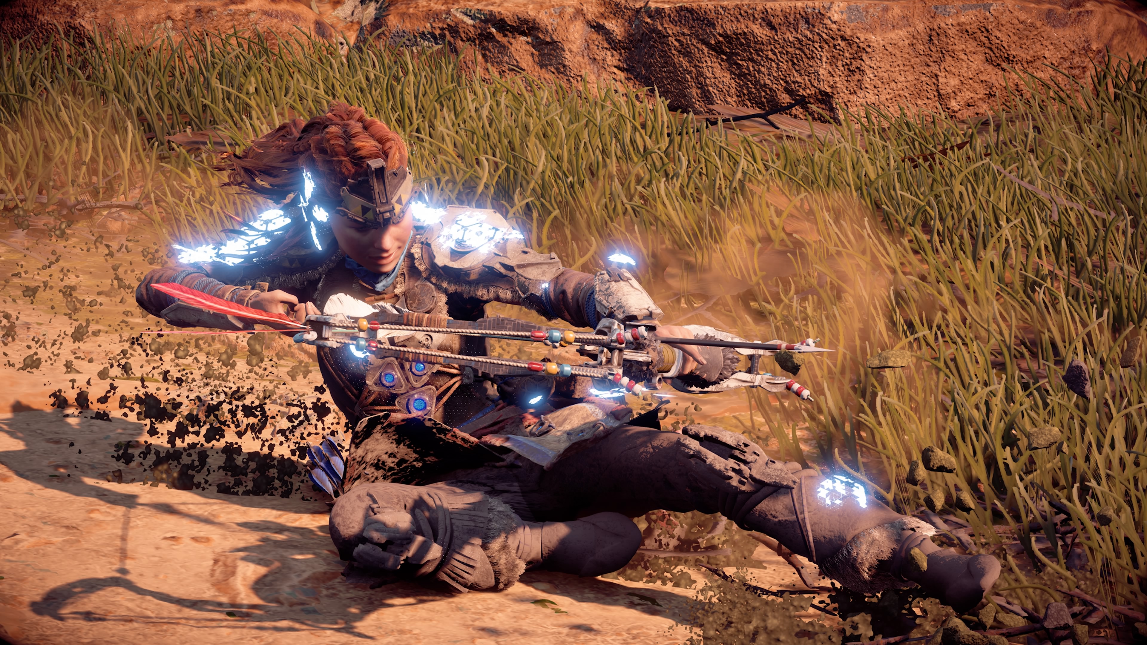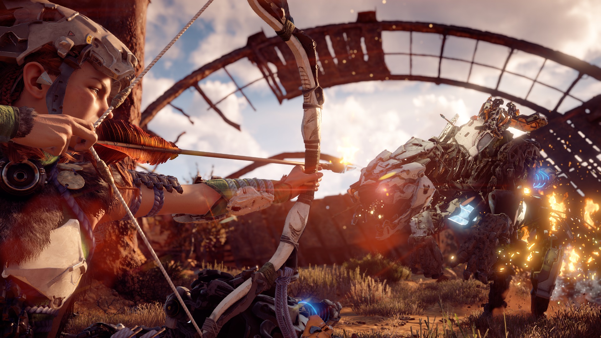 Si Horizon devait avoir un crédo, ça serait “chasser ou être chassé”. Et il vaut mieux au vu des nombreuses machines hostiles foulant le monde du jeu et qu’il faudra apprendre à affronter et à apprivoiser. Des plus petites comme les Veilleurs et Galopeurs, aux plus imposantes telles que les Cracheurs et les Ravageurs, chaque créature à son pattern, ses forces et ses faiblesses qu’il faudra bien prendre le temps d’étudier avant l’assaut afin d’être préparé en conséquence.