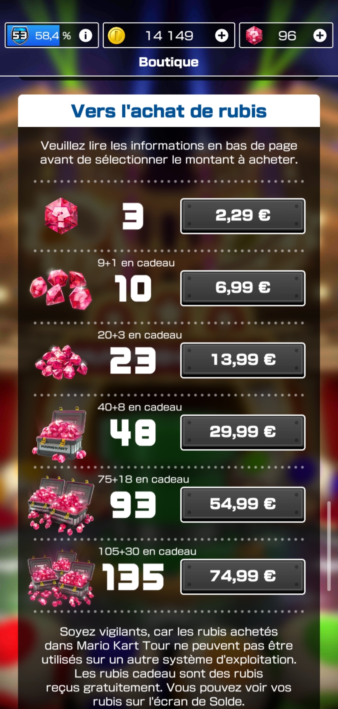 Si ce MKT se serait arrêté là, il m’aurait laissé le souvenir d’un bon petit jeu sympathique à jouer et avec des sensations proches des opus de la série. Sauf qu’il a fallu que Nintendo transforme leur jeu en machine à sous en intégrant des microtransactions à tout va, et un système de « pay to win » qui désavantage sévèrement ceux qui ne désirent pas aligner la monnaie. Je m’explique.