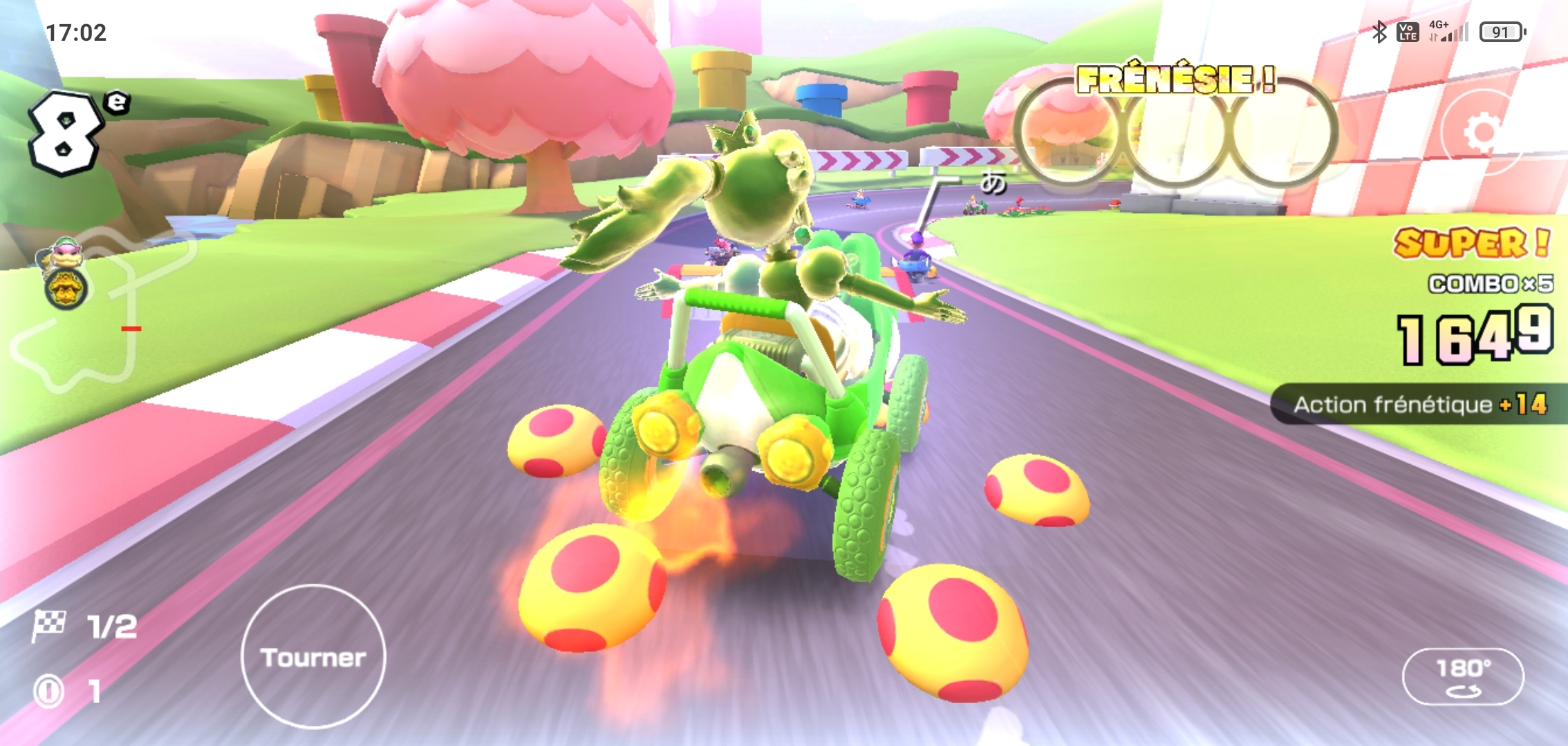 Version mobile oblige, la jouabilité n’est plus la même que sur consoles et le gameplay a dû s’adapter en conséquence, mais au prix de certaines concessions. Avec un doigt pour piloter les Karts, les possibilités sont forcément réduites. Karts qui dans cet épisode, avanceront d’eux-mêmes sans action de la part du joueur. Tout ce qu’il y aura à faire c’est d’orienter le kart et balancer les objets. Simple, accessible, et efficace.