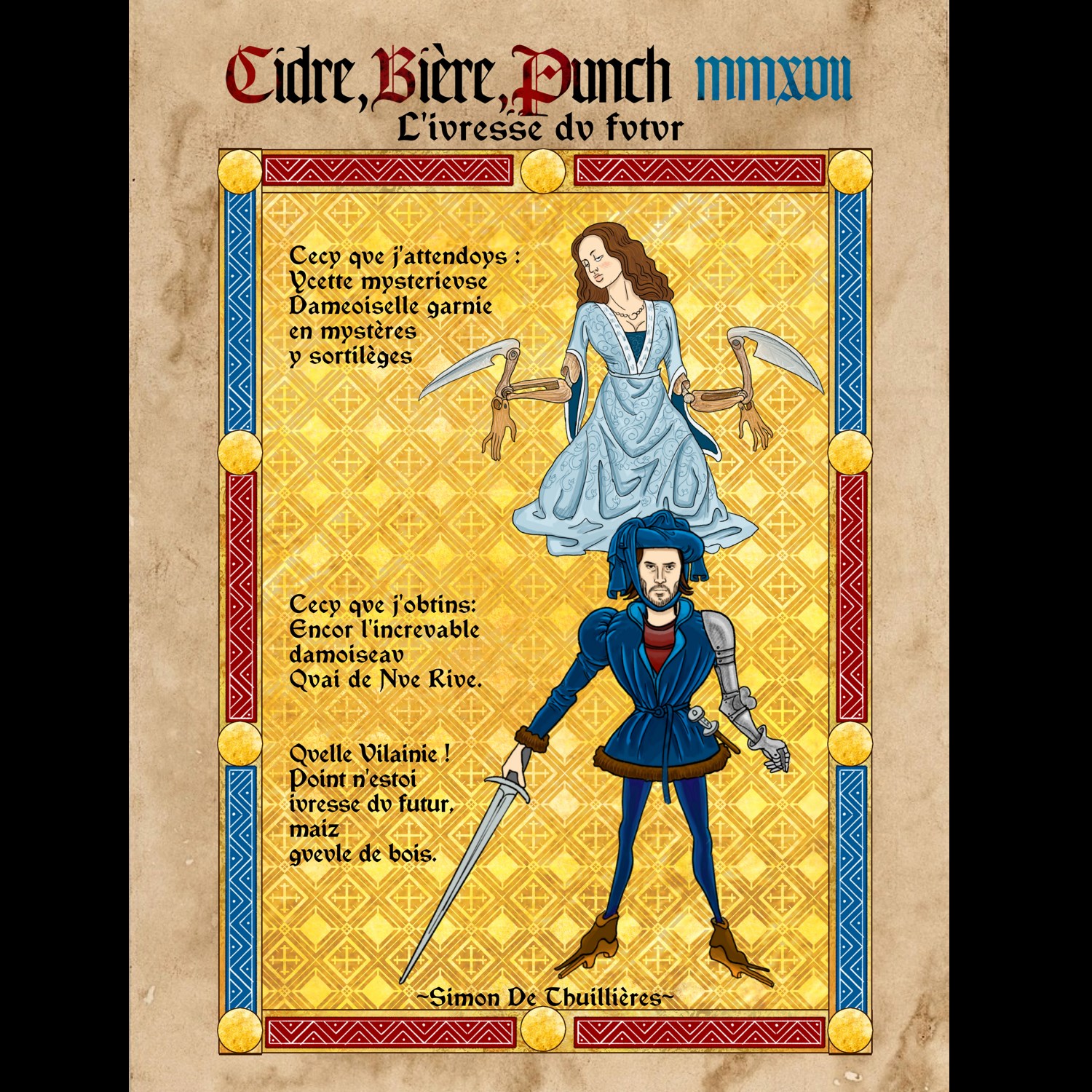 Cette année, les illustrations moyenâgeuses qu’étaient les enluminures ont connu un regain de popularité grâce à un artiste marseillais connu sous le pseudonyme de Simon De Thuillières. Ce dernier a imaginé comment la Pop-Culture aurait été représentée des siècles avant nôtre ère en détournant des affiches de films, jeux vidéos, mangas et plus encore à la sauce médiévale. Le tout écrit dans un « vieux français » irréprochable et dont je suis tombé sous le charme. Pour vous, j’en ai sélectionné une vingtaine parmi mes préférées.