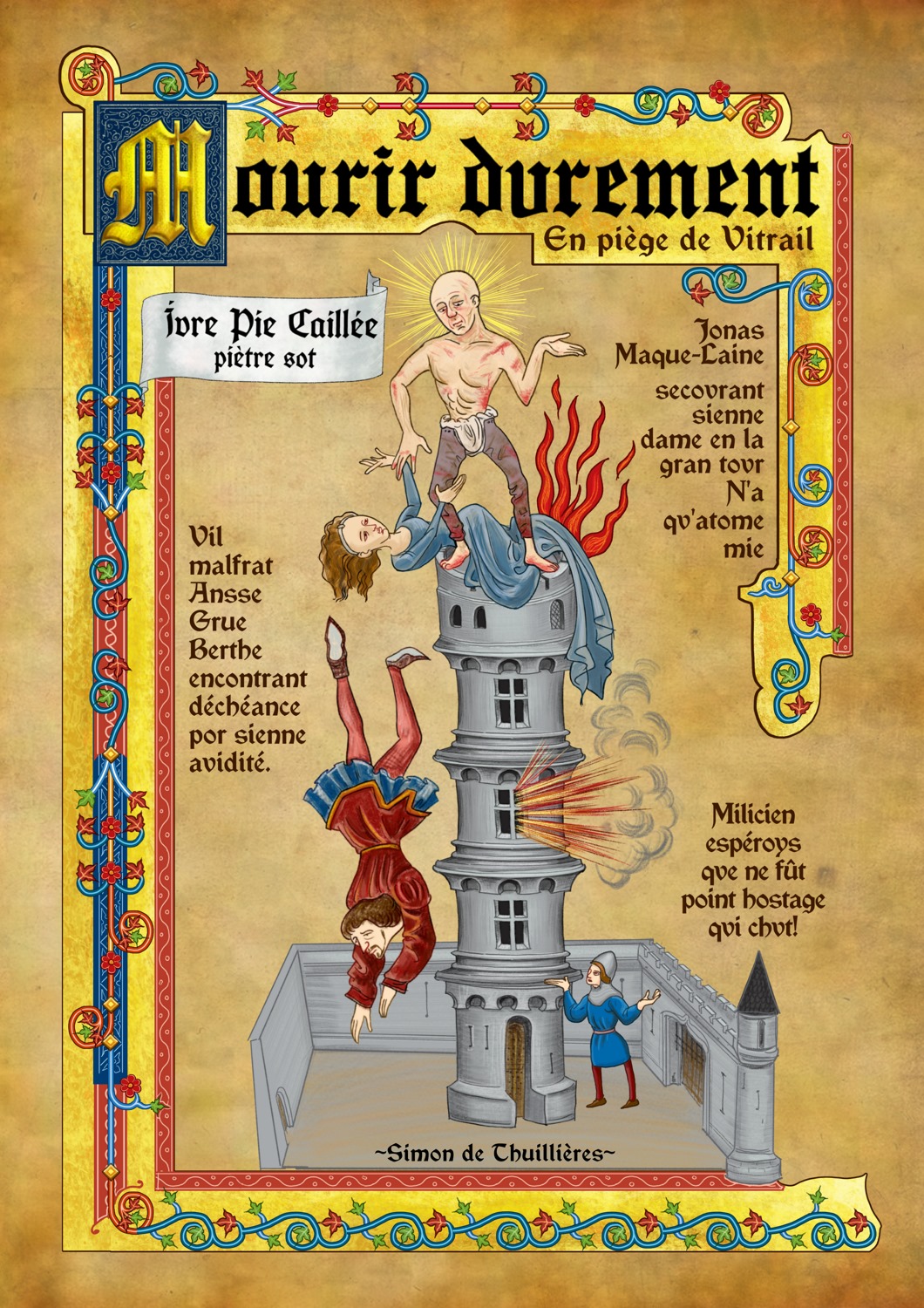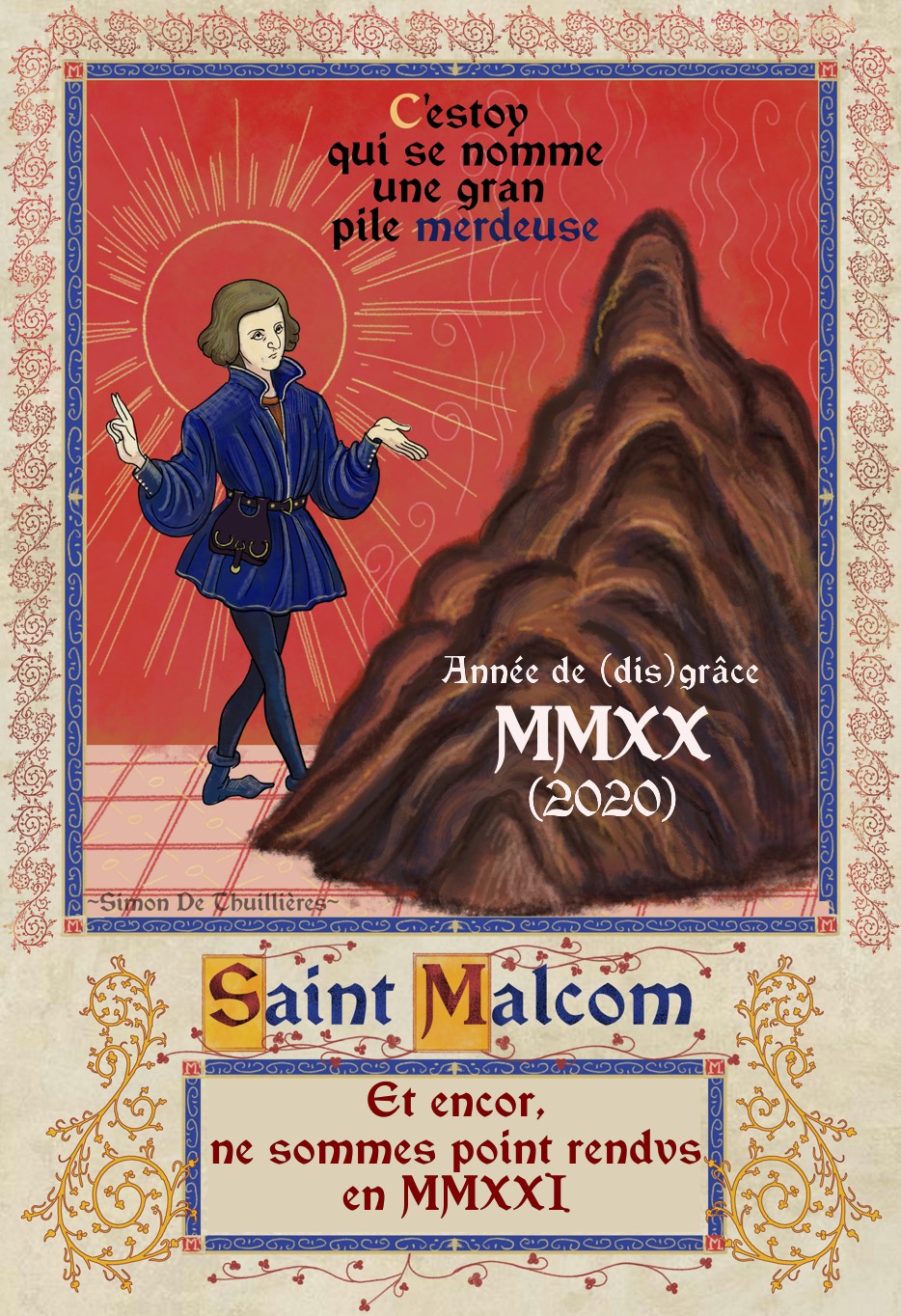 Cette année, les illustrations moyenâgeuses qu’étaient les enluminures ont connu un regain de popularité grâce à un artiste marseillais connu sous le pseudonyme de Simon De Thuillières. Ce dernier a imaginé comment la Pop-Culture aurait été représentée des siècles avant nôtre ère en détournant des affiches de films, jeux vidéos, mangas et plus encore à la sauce médiévale. Le tout écrit dans un « vieux français » irréprochable et dont je suis tombé sous le charme. Pour vous, j’en ai sélectionné une vingtaine parmi mes préférées.