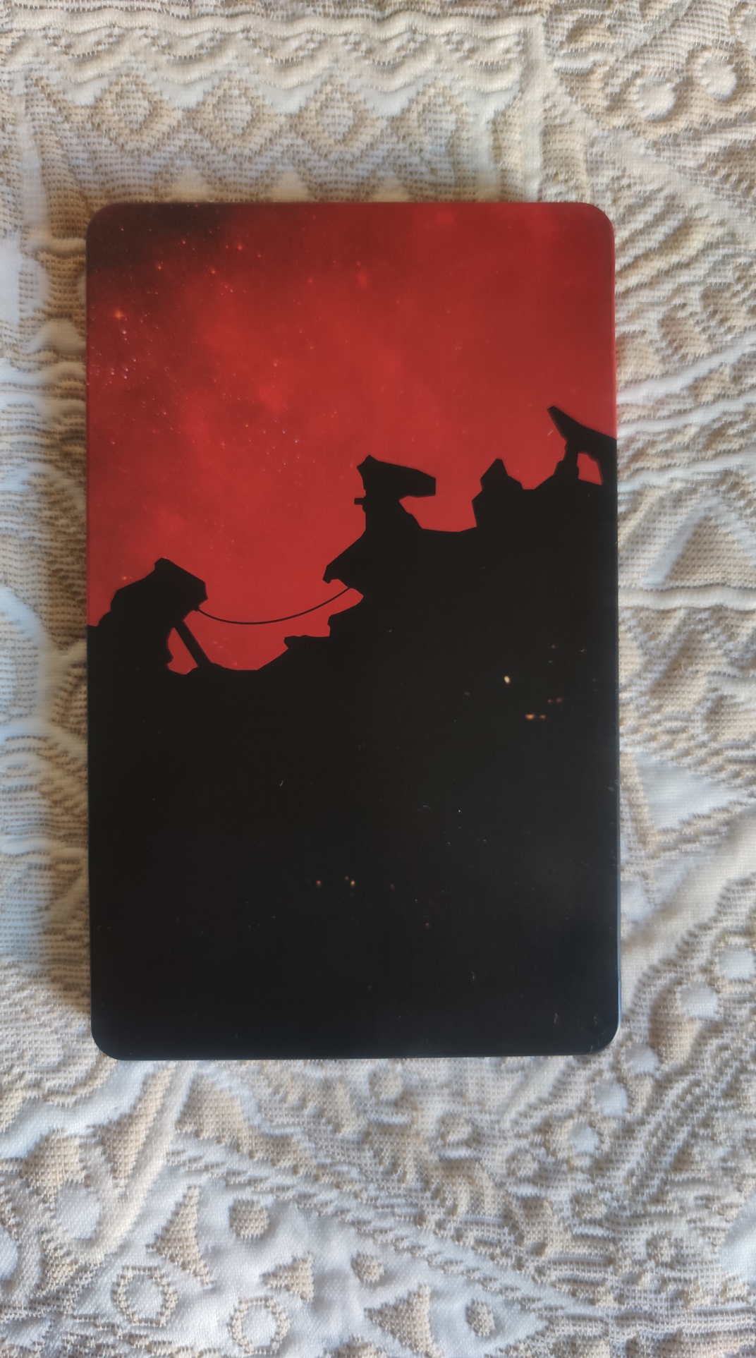 La boite ouverte laisse apparaitre deux emplacements occupés par le Steelbook à gauche, et les 5 cartes holographiques rangés dans leur étui à droite et qui va nous intéresser en premier lieu.