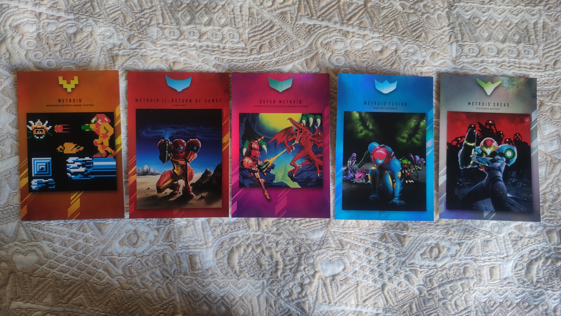 Chacune de ces cartes qui brillent représentent un opus 2D de la saga. Tous sont présents à l’exception de l’opus Zero Mission sur GBA qui est un remake du tout premier Metroid.