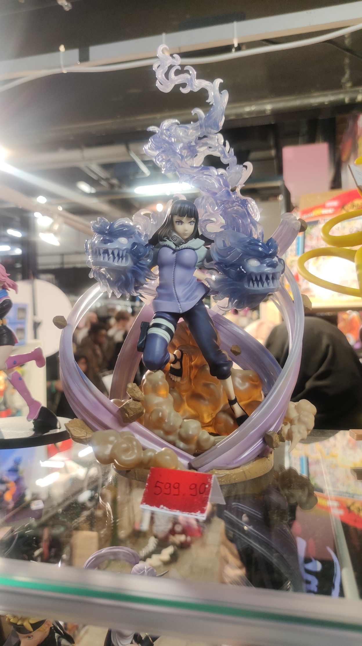 Il est temps de parler de la disposition de cette Polymanga. Qui de ce que j’ai cru comprendre, avait pas mal évoluée par rapport aux anciennes éditions. À commencer par le rez-de chaussé divisé en deux avec d’abord la grande zone commerciale où on y retrouve tous les produits dérivés typiques des salons du genre. Mais l’un d’entre eux aura retenu mon attention (à défaut de l’acheter). Il s’agit de cette incroyable figurine d’Hinata au tarif encore plus incroyable de 600 CHF…