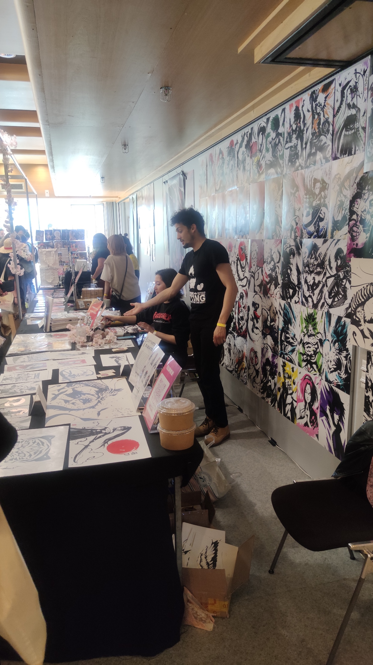 Le 2ème étage était lui aussi divisé en deux zones. D’un côté la salle Miles Davis où je n’ai pas mis les pieds. Et de l’autre le village (beaucoup trop étroit) des artistes comme Nogi San. J’ai trouvé que la disposition des lieux ne les mettait pas en avant car trop rapprochés entre eux, et pas du tout dans le sens de circulation général. Et en cas de forte affluence, c’est encore plus difficile d’en profiter à cause de ces petites allées.