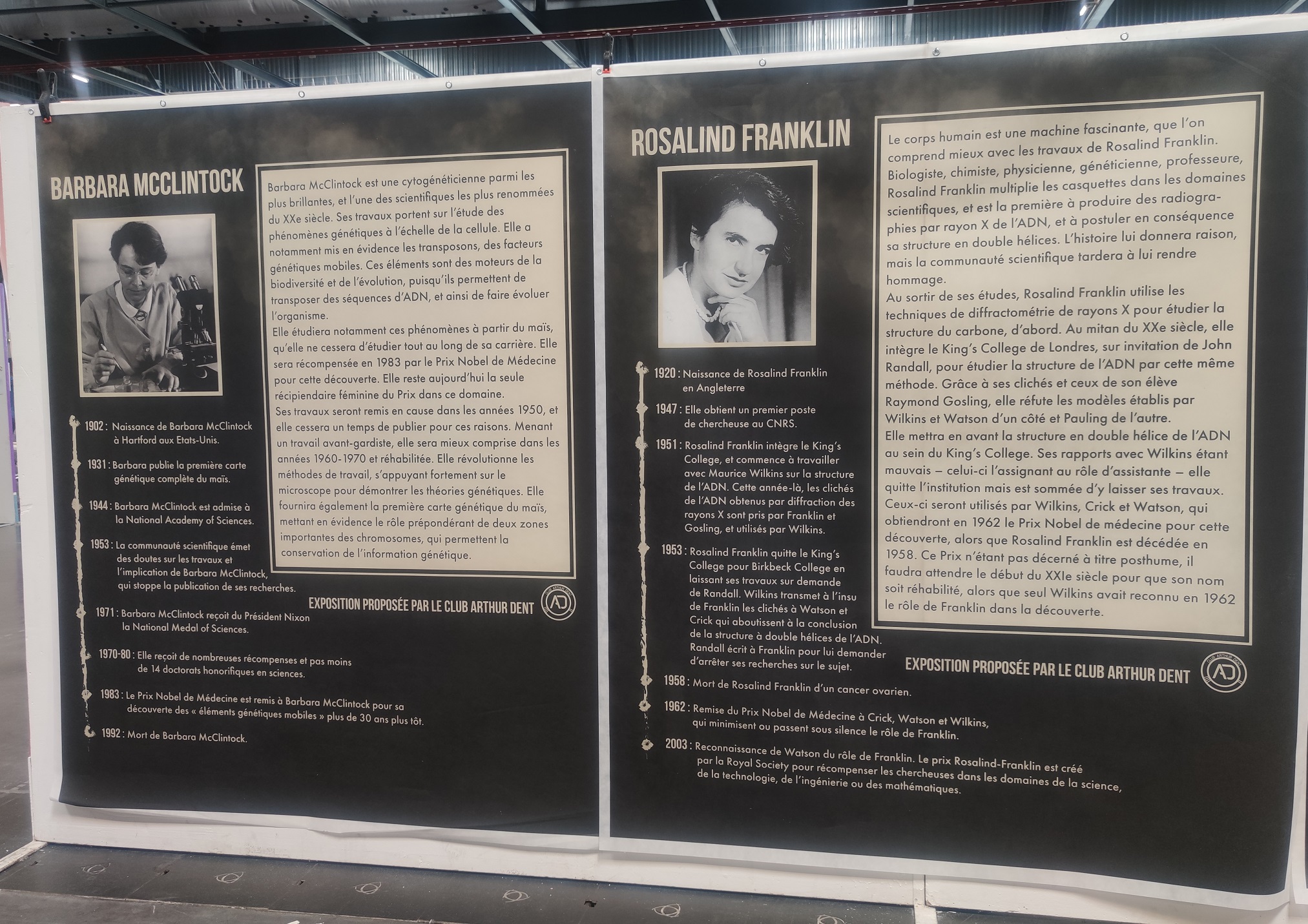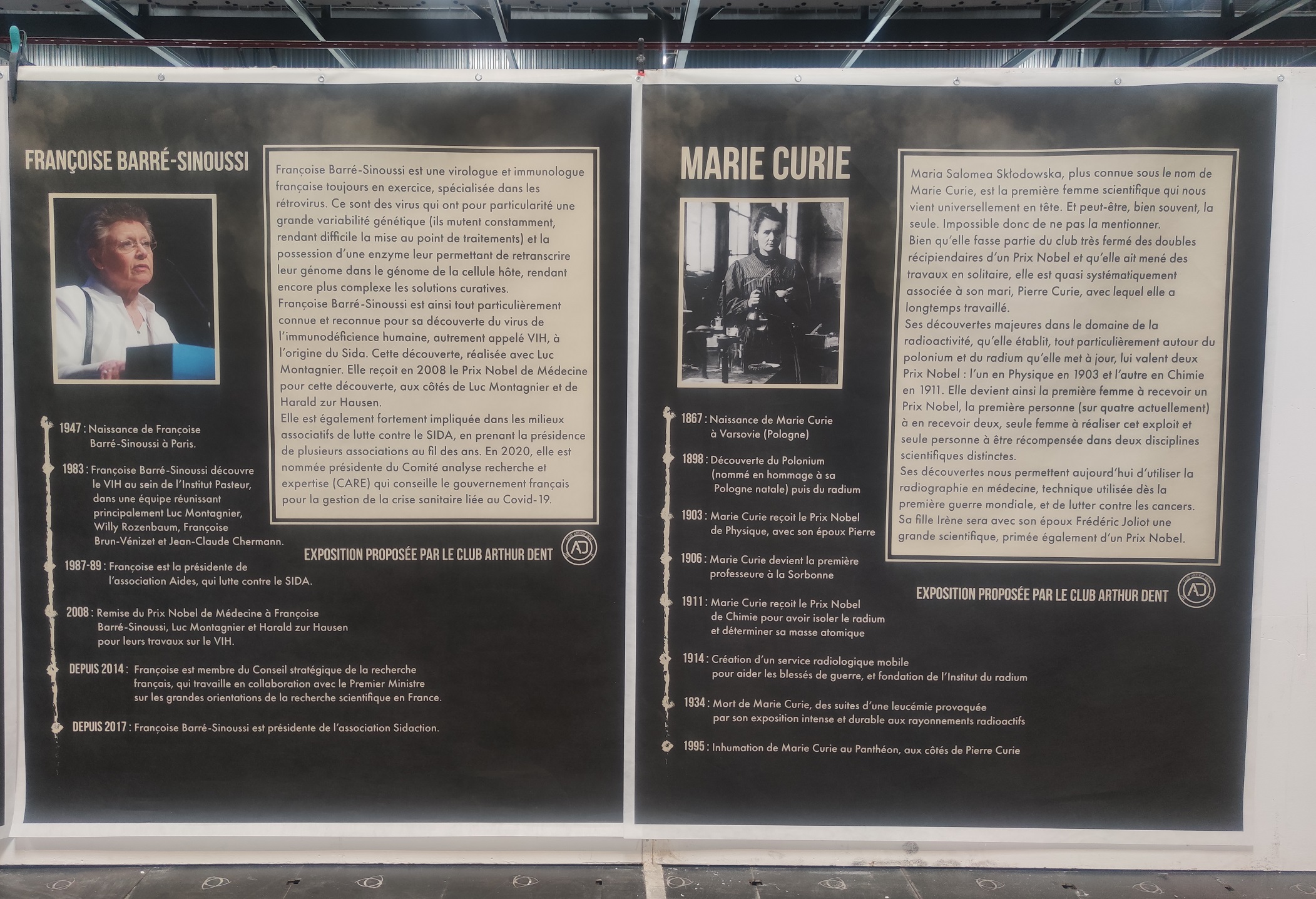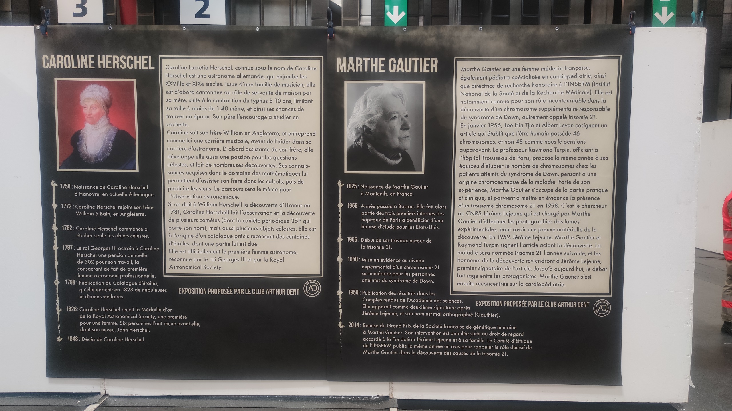 Non loin de là, une autre expo du Club Arthur Dent avec de multiples fresques murales dédiées aux femmes ayant fait avancer la science au même titre que leurs homologues masculins plus connus. Comme Caroline Herschel, Marthe Gautier, Hedy Lamarr, Ada Lovelace, Françoise Barré-Sinoussi, Marie Curie, Barbara Mcclintock ou encore Rosalind Franklin.