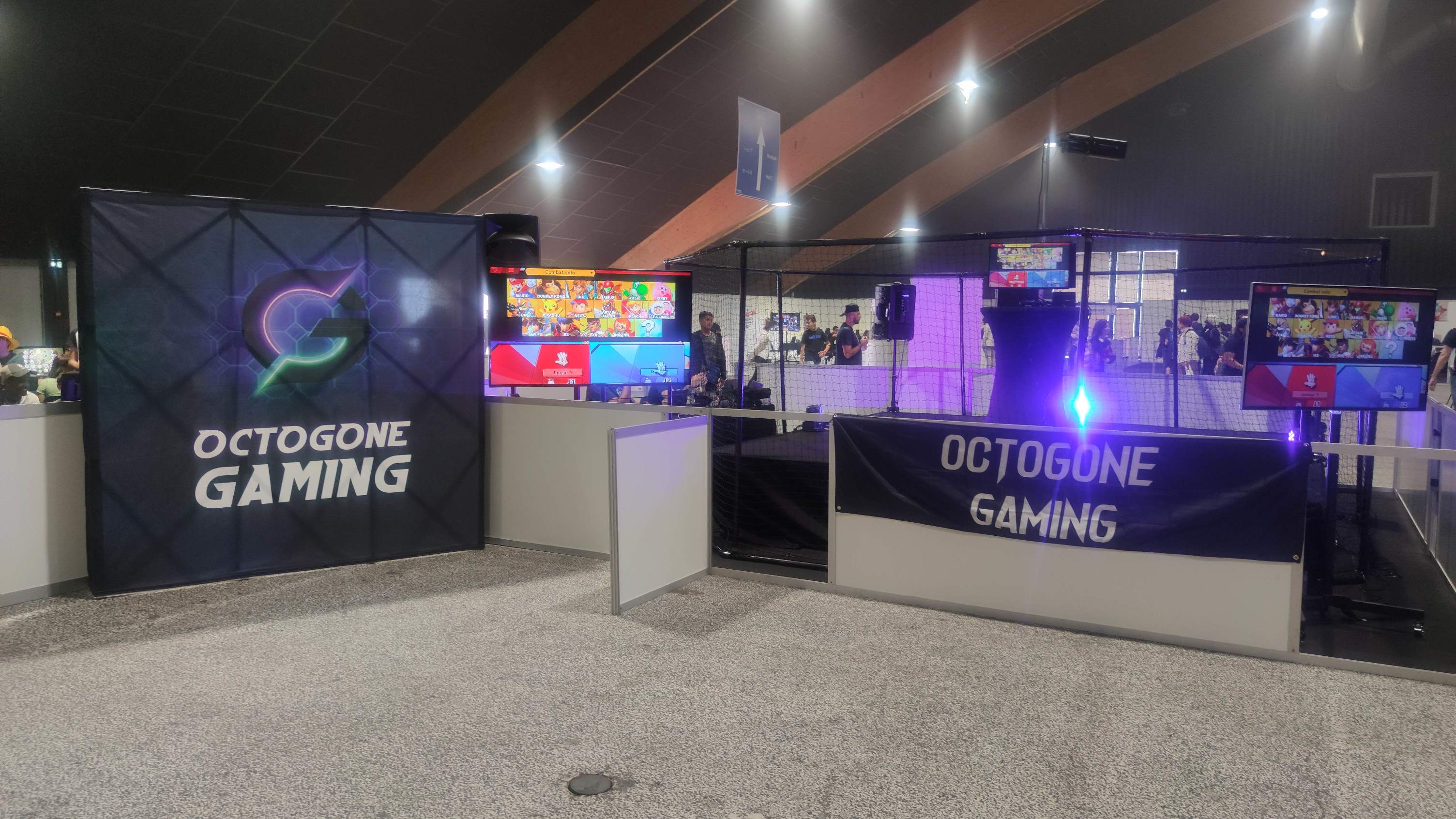 Avec l’Octogone Gaming qui organisait des tournois en 1v1 sur Smash Bros, Mario Strikers, Demon Slayer, Tekken 7, ou encore Street Fighter V pour ne citer qu’eux. Ça restera toujours moins violent que le MMA même si la disposition est similaire. 👊