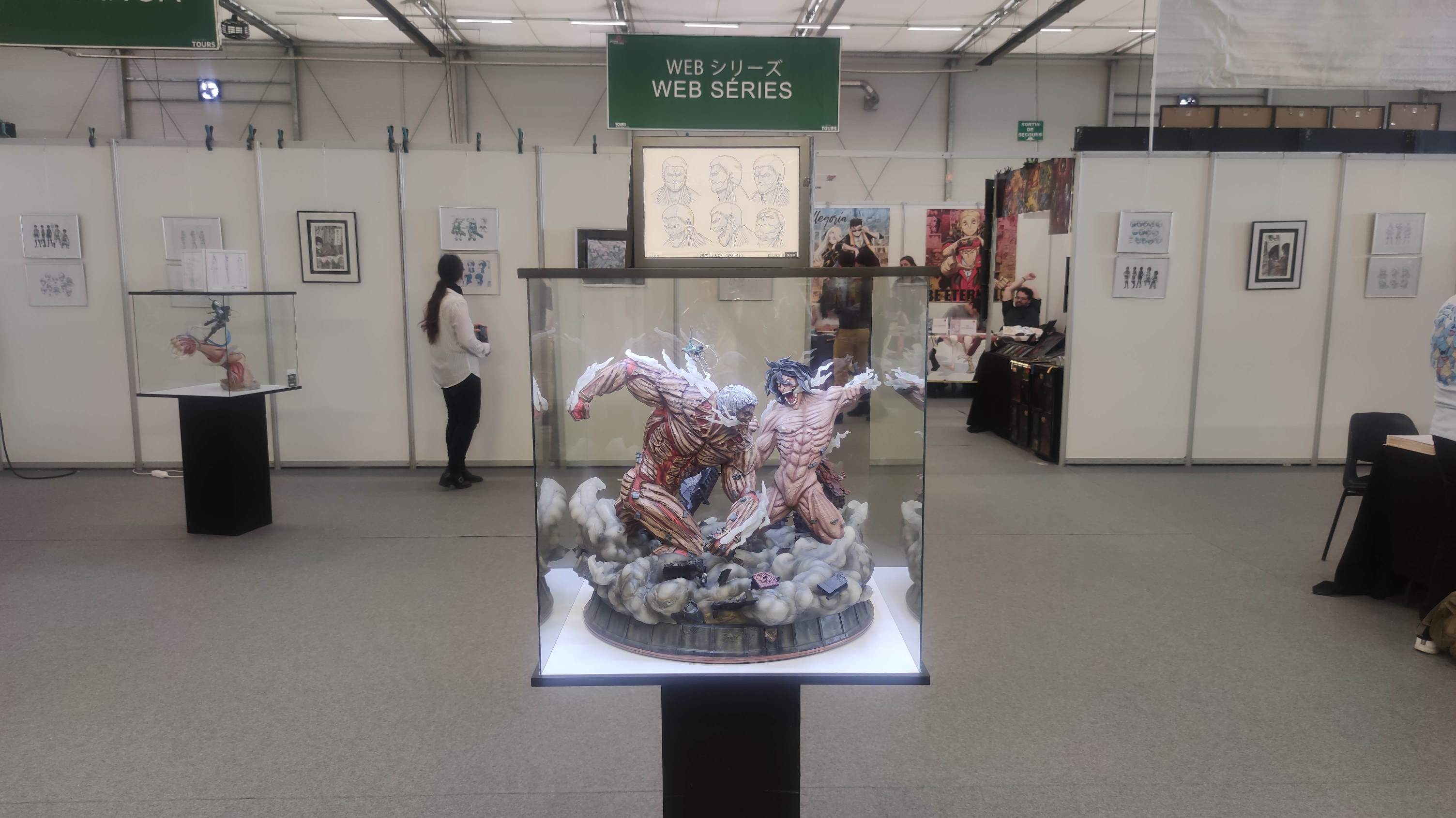 L’expo sur l’Attaque des Titans par One-Piece-Passion avec des figurines par Oniri Créations et du Papercraft par DT WORKSHOP.