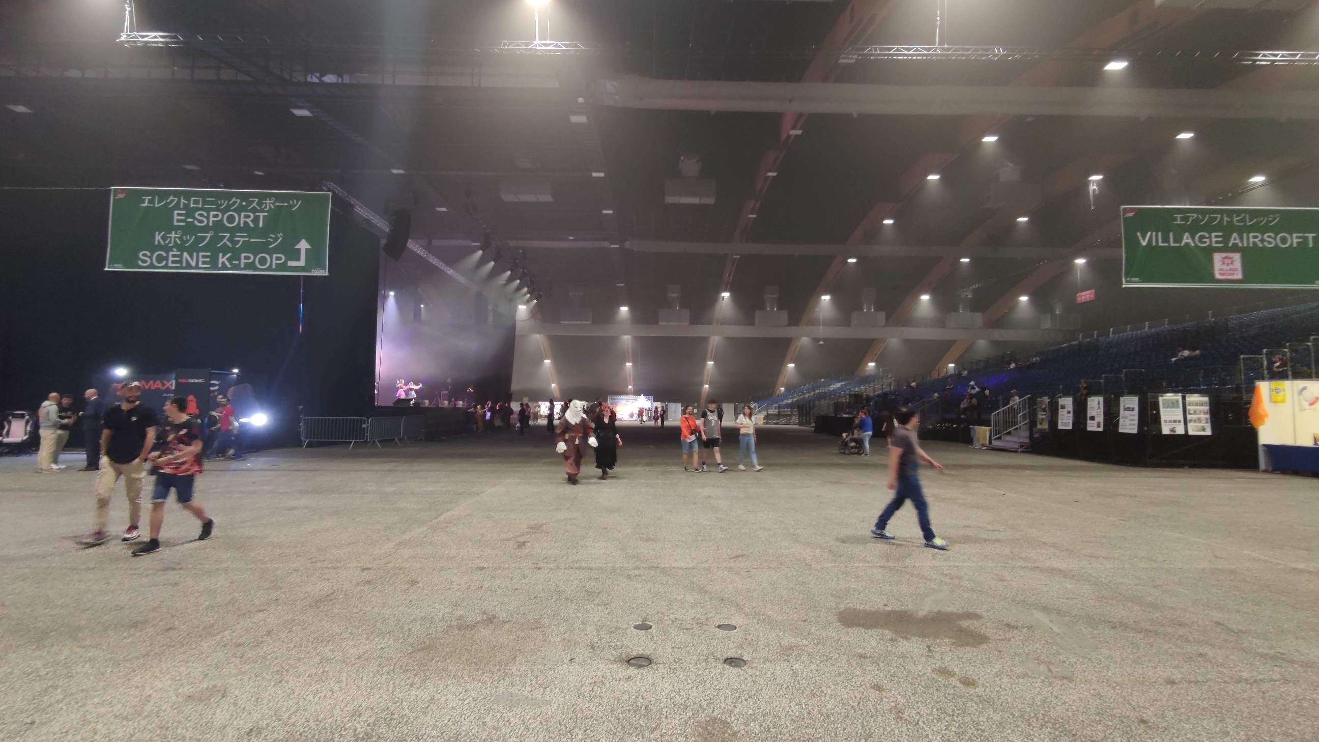 Et la fameuse Grande Scène située en plein centre du Grand Hall. Pile entre la Zone E-Sport et l’Espace K-Pop. J’ai trouvé que ce n’était pas le placement le plus idéal pour une scène de cette envergure. Sachant qu’une bonne vingtaine de mètres la séparait des gradins les plus proches. Ce qui fait que même en étant bien positionné, la distance se ressent. Au point où pour voir au mieux ce qui s’y passe, il faut soit opter pour un bon objectif photo, soit être au plus près de la scène.