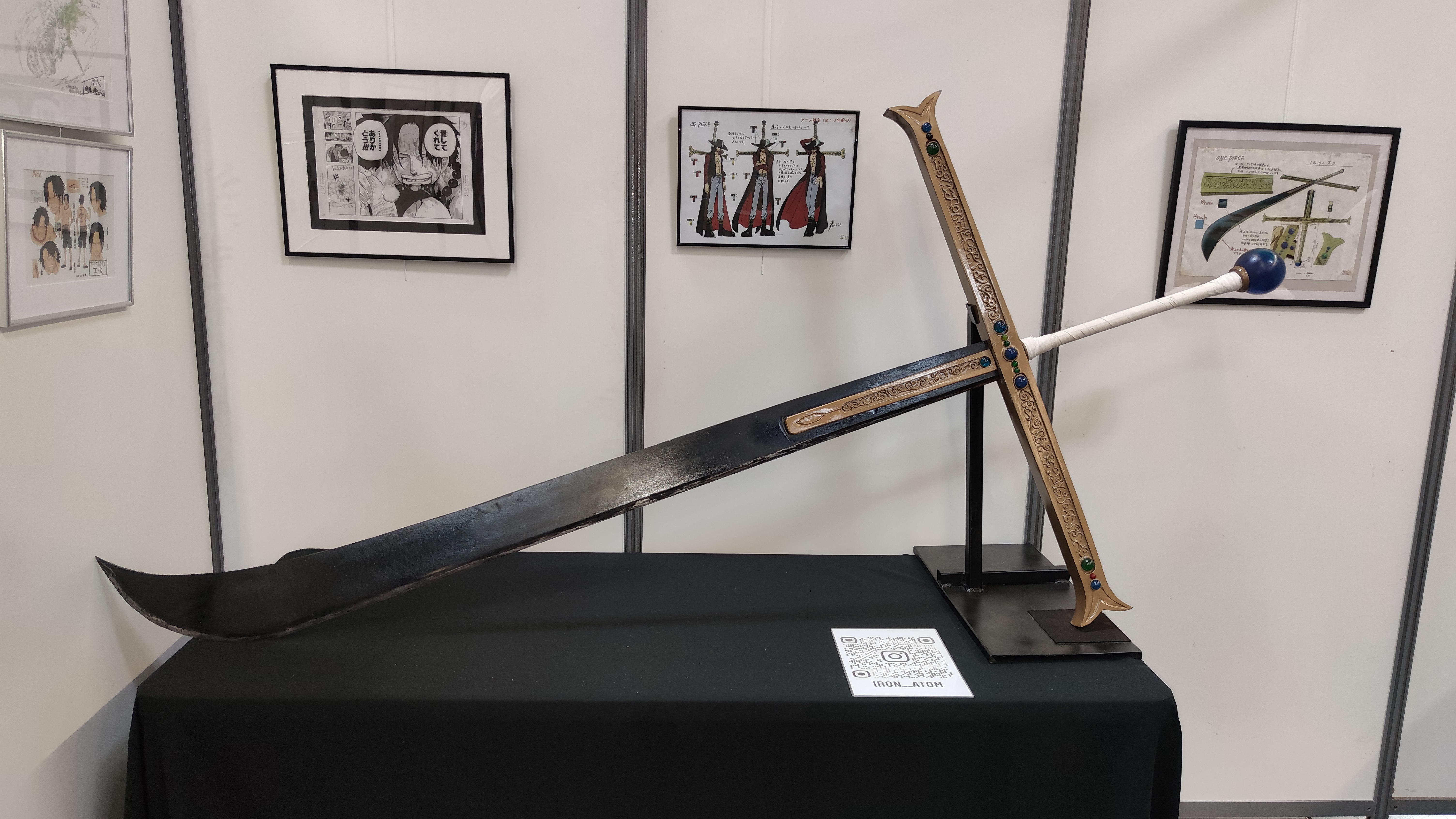 La pièce maitresse du stand, l’épée noire de Mihawk (probablement pas à taille réelle) forgée par Iron Atom qui n’en n’est pas à son coup d’essai. C’est aussi à lui qu’on doit le Bisentō vu plus haut.
