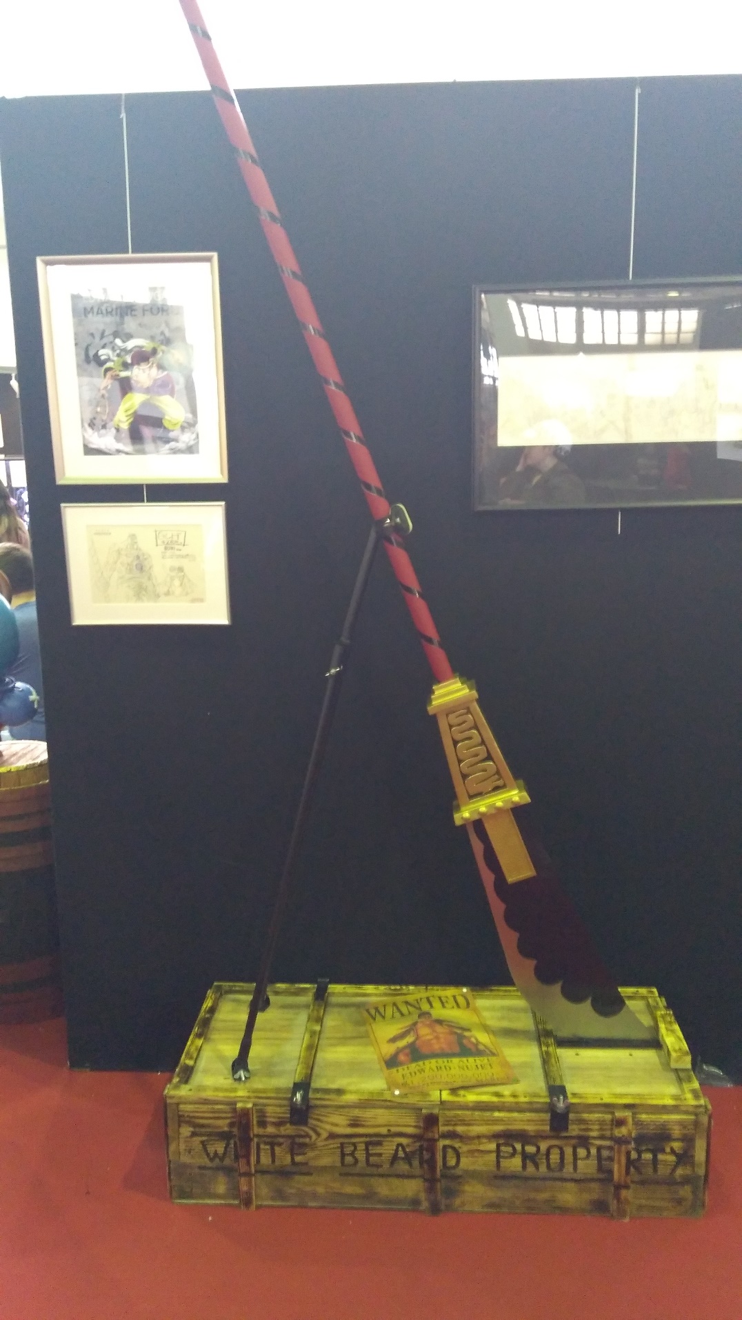 La pièce maitresse du stand, l’épée noire de Mihawk (probablement pas à taille réelle) forgée par Iron Atom qui n’en n’est pas à son coup d’essai. C’est aussi à lui qu’on doit le Bisentō vu plus haut.