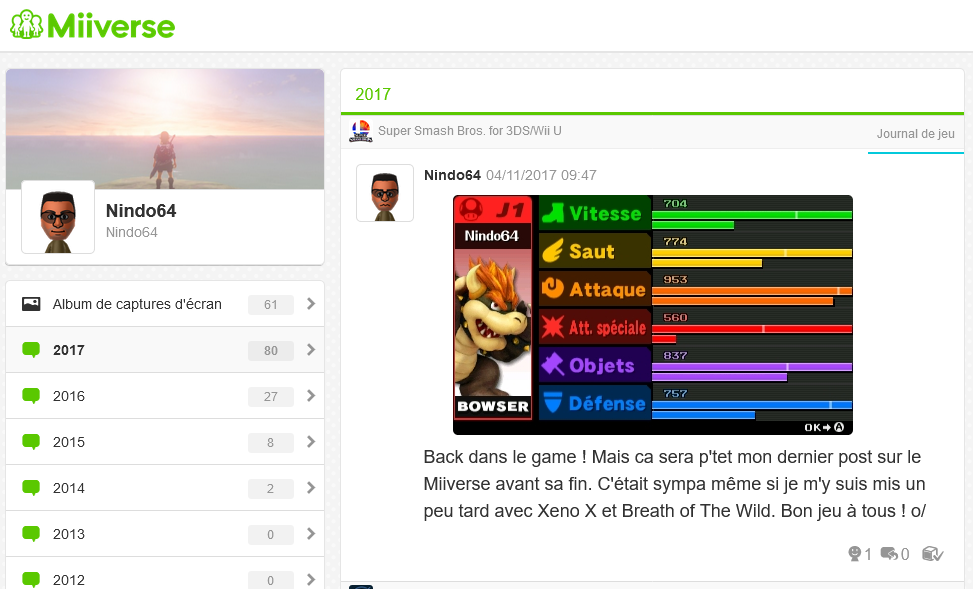 Au final c’était un service très loin d’être parfait mais qui personnellement me manque un peu et restera unique en son genre. J’ai même pris soin de garder une archive de toutes mes publications pour ne rien oublier. D’ailleurs dans les dernières heures du Miiverse, Nintendo publia un très bel hommage regroupant les messages d’adieux des utilisateurs. Pour voir l’image en HD c’est par ici.