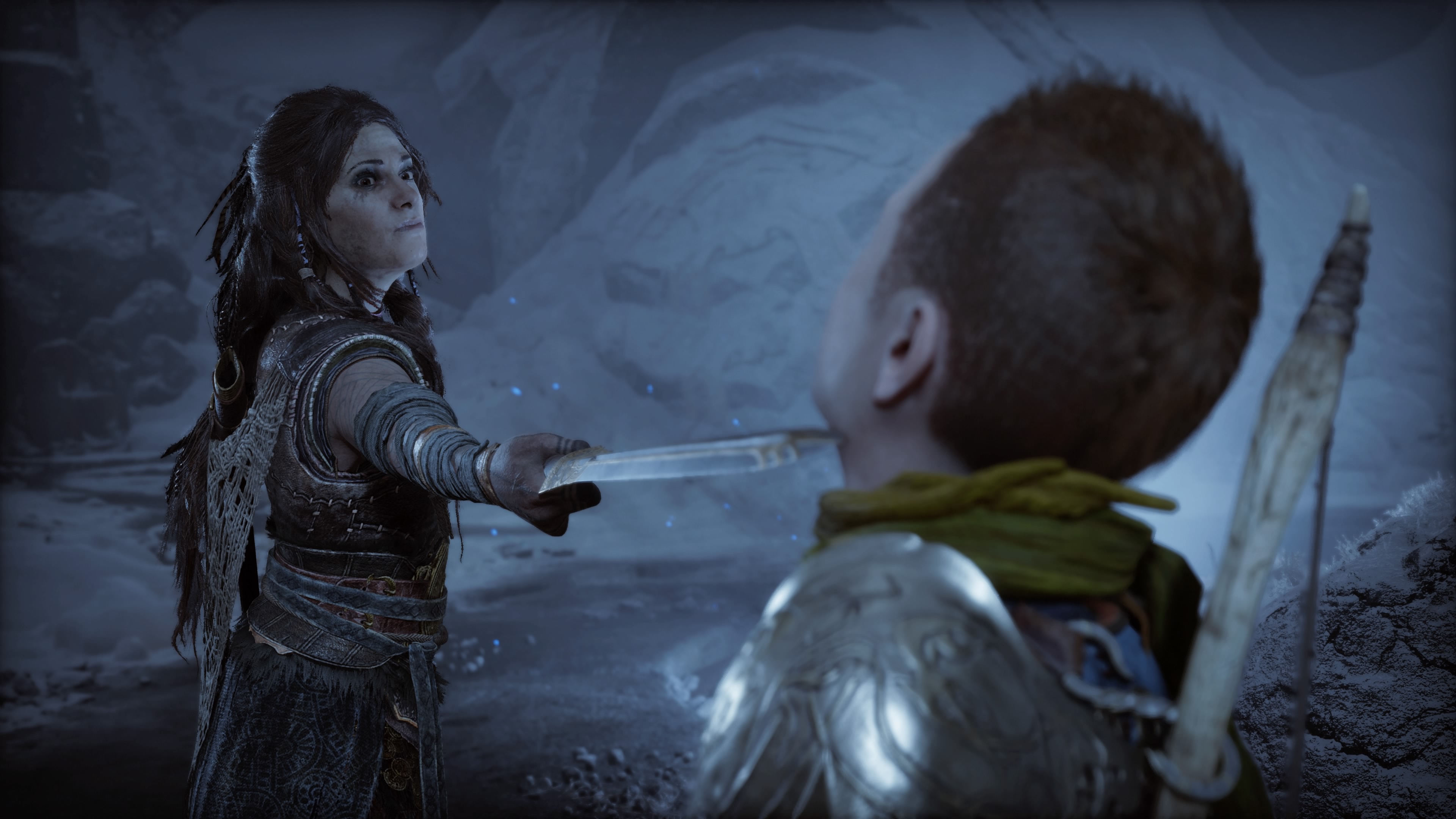 Pour les personnages déjà connus, j’appréhendais l’inévitable retour de Freya qui à la fin du premier opus, avait juré de se venger de Kratos et d’Atreus après que ceux-ci aient pris la vie de son fils Baldur. Alors que ce dernier menaçait la vie de sa propre mère. Un choix difficile sachant que Kratos ne pouvait se résoudre à laisser mourir celle qui auparavant avait sauvé son fils d’une mort certaine. Suite à ça, elle changea radicalement au point où l’on peut littéralement lire la haine et le désespoir sur son visage. Et sans trop en divulguer, son évolution est bien traitée et cohérente avec le personnage.