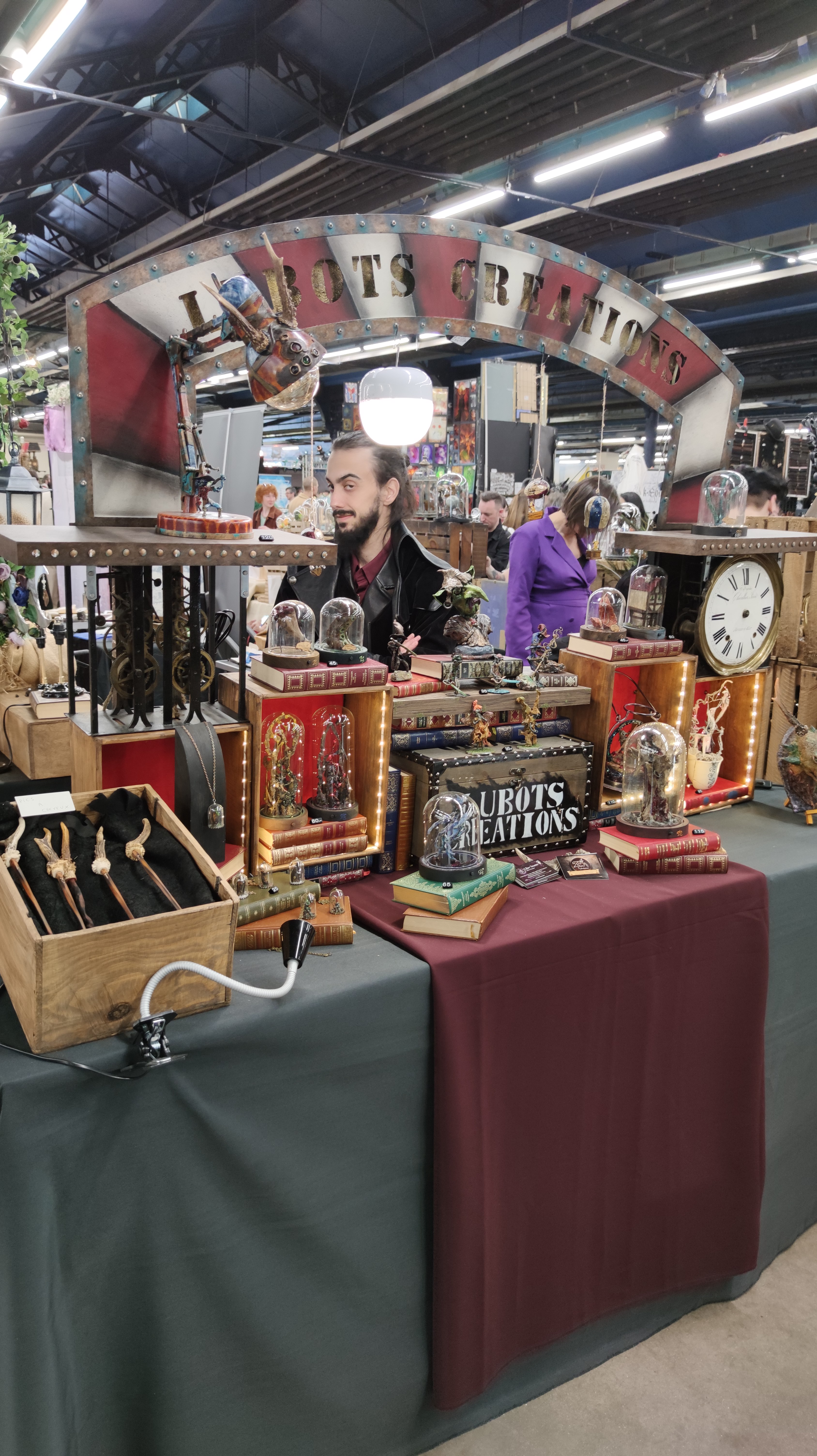 Quant au SF, la dernière édition en solo date de 2019 à l’Espace Champerret de Paris. Convention où j’avais également pu m’y rendre pour la première fois cette année-là, mais sans en faire d’article. Je me souviens y être allé un 1er Novembre, et que c’était noir de monde. Pour les univers abordés, on est davantage sur de la science-fiction, fantasy, steampunk, médiéval, etc. Avec de nombreux artisans qui exposaient leurs créations faites main. Ainsi que de nombreux auteurs et illustrateurs.