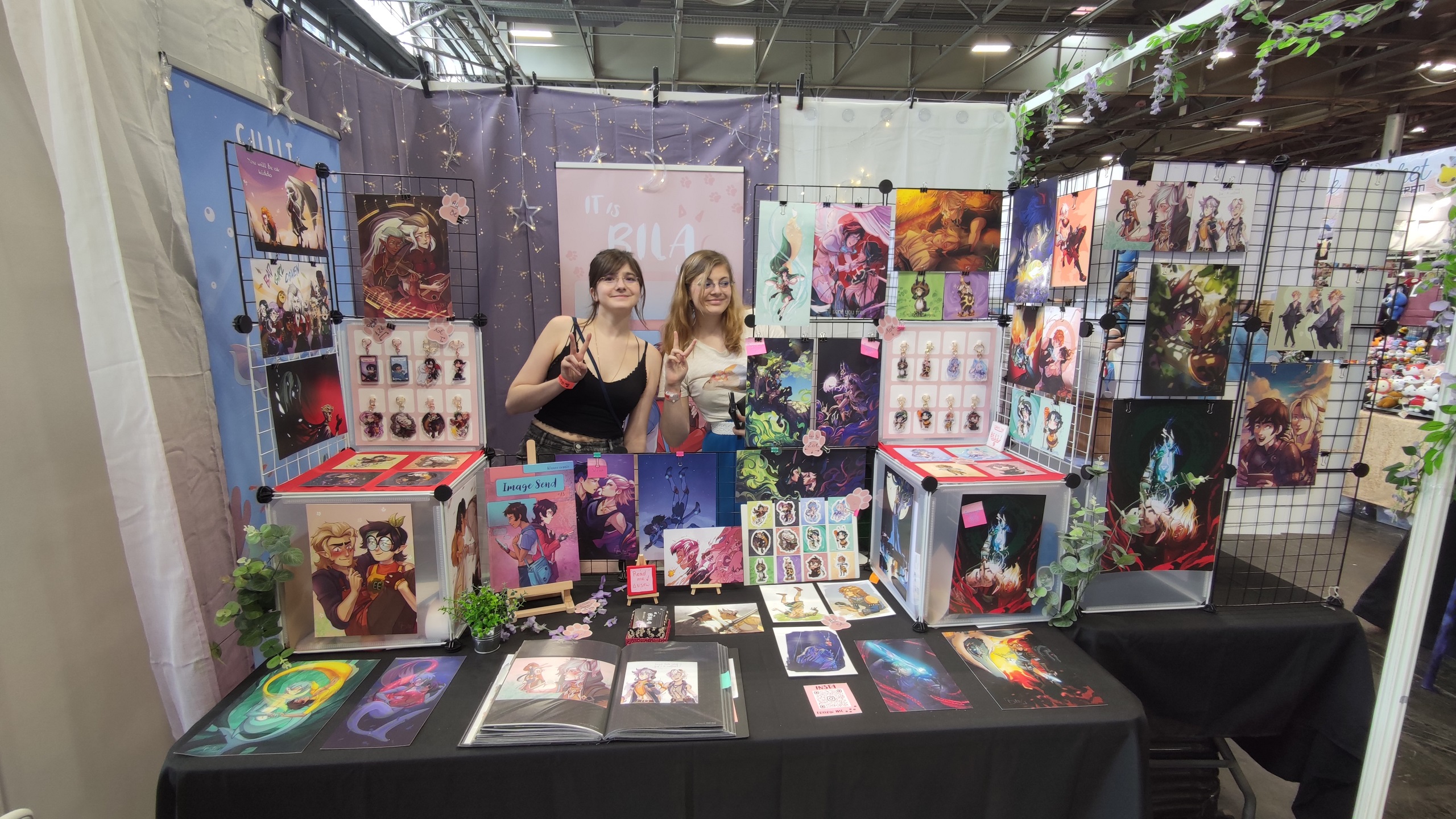Le stand des sœurs @it.is.bila (à qui j’ai choppé 2 fanarts) et @shuideleau