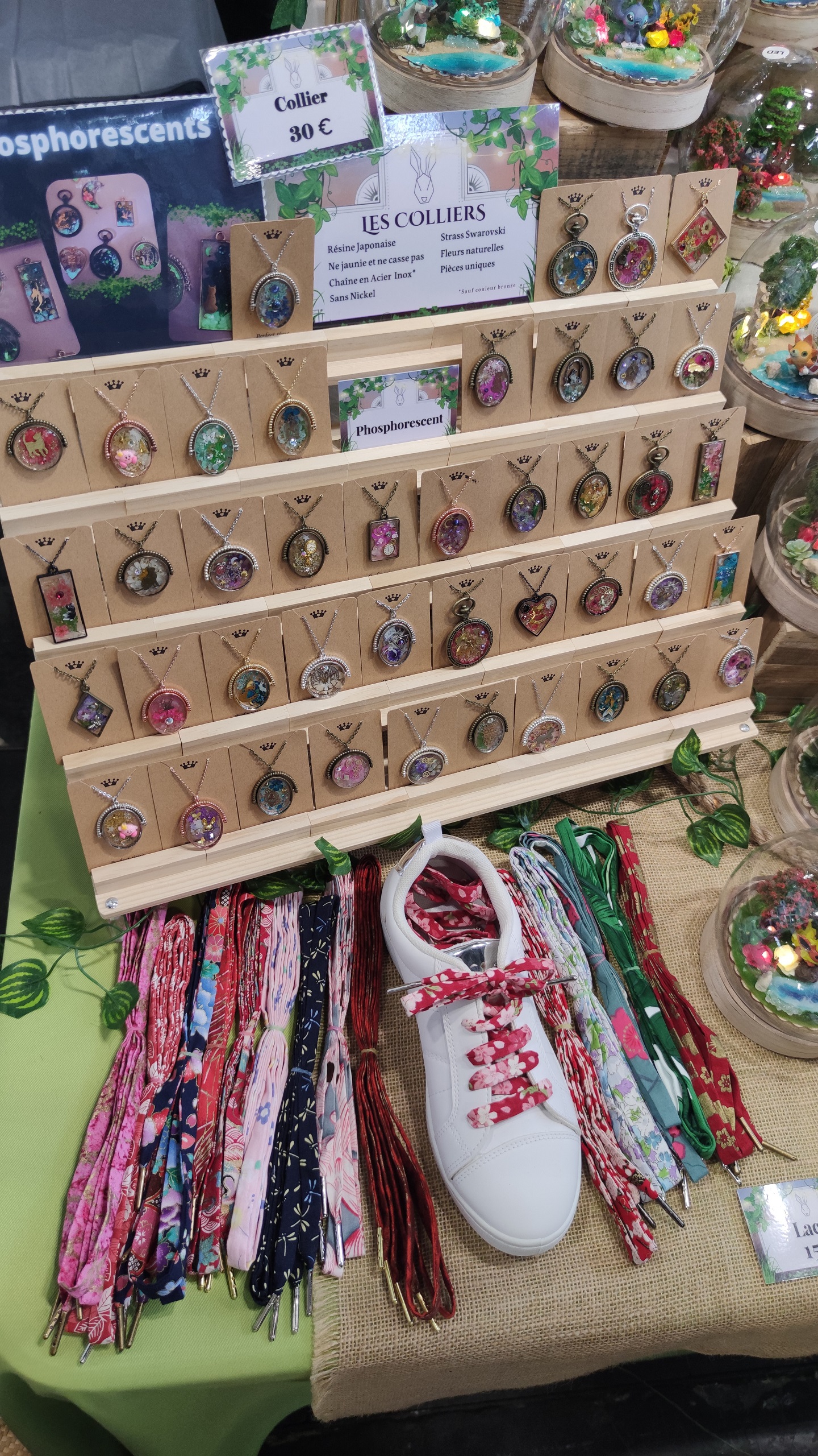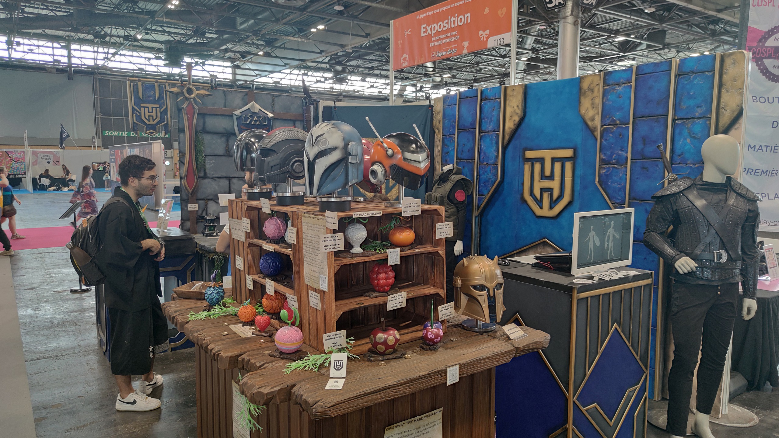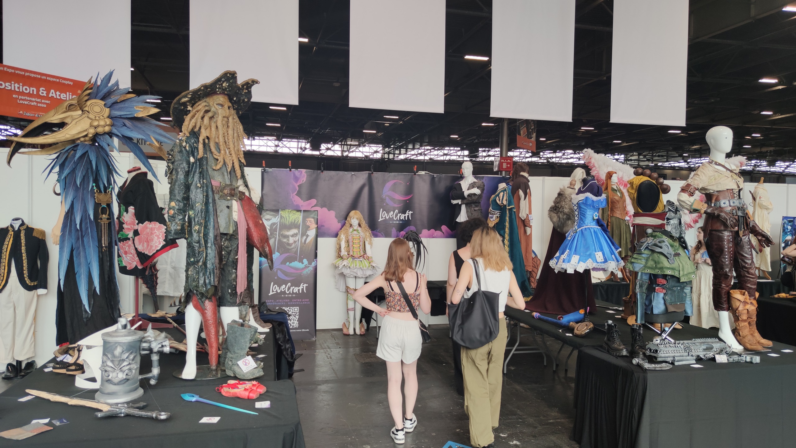 À gauche le stand de @dragunova_cos (absente au moment de la photo) avec ses costumes, accessoires cosplays, et prints. Et à droite @ynotece que j’ai croisé par pur hasard dans les allées. Ancienne cosplayeuse aujourd’hui vidéaste à temps plein, et qui parle principalement des accoutrements des personnages dans les films, jeux vidéos, et mangas.