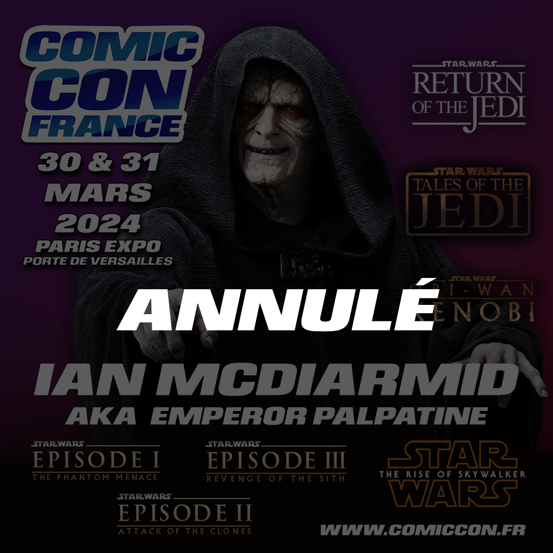 Parmi les plus gros invités et un des premiers à avoir été révélés, Ian McDiarmid. Le terrible Empereur Palpatine dans les films Star Wars, déjà de la partie lors du Comic Con Brussels de 2023. Mais ayant été contraint d’annuler sa venue à celle de Porte de Versailles quelques semaines avant l’évènement.