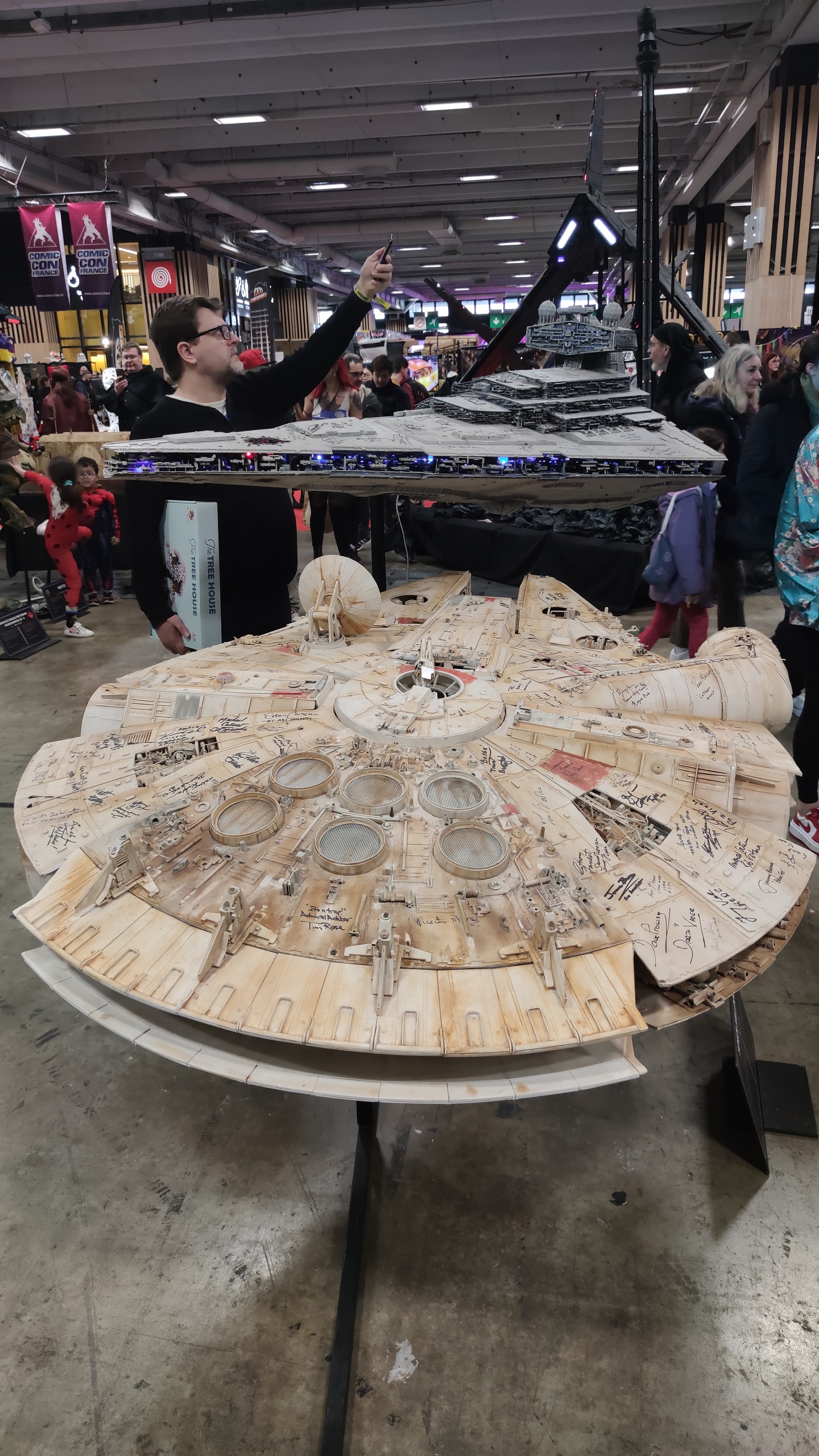 L’exposition de maquettes Star Wars par Yavin. Trois années auront été nécessaires pour construire le vaisseau Faucon Millenium de 2 mètres de long.